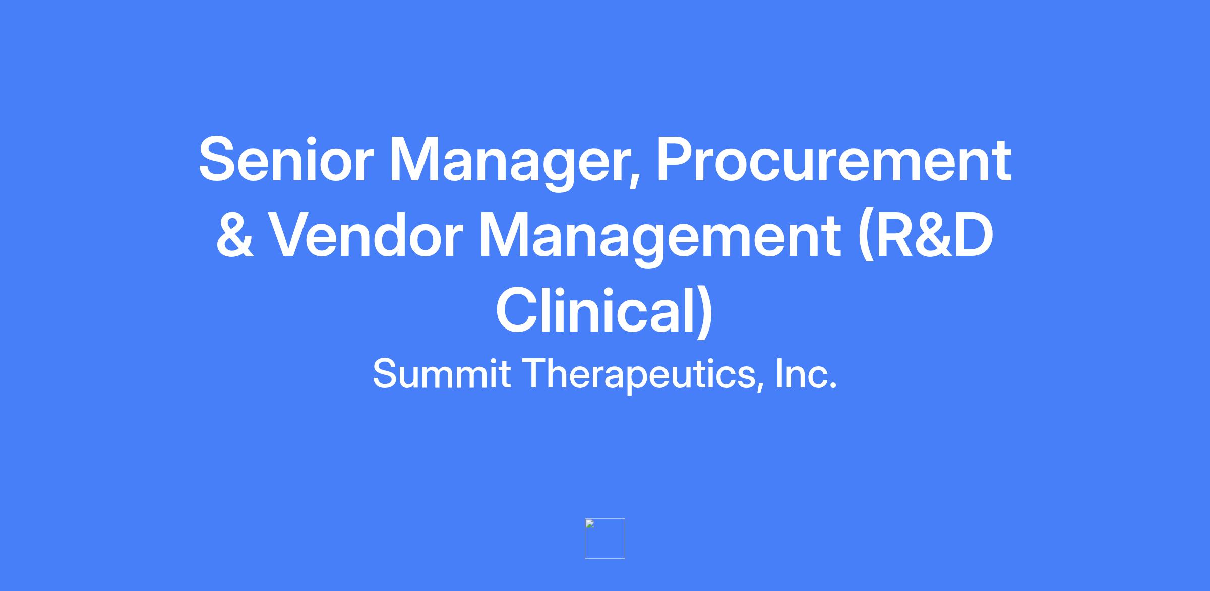 The Senior Manager, Procurement & Vendor Management (R&D Clinical) will lead sourcing strategy, contracting, and governance activities across Summitโs global clinical research and development organization. This individual will report into the Head/Senior Director of Procurement and Vendor Management. The successful incumbent will be responsible for all phases of clinical study execution such as CROs, central labs, and other specialty clinical suppliers across R&D. The role ensures that vendors deliver high-quality, compliant, and cost-effective services aligned with Summitโs clinical and operational goals. Moving forward, this role could expand to take on other additional responsibilities across R&D and in Procurement.