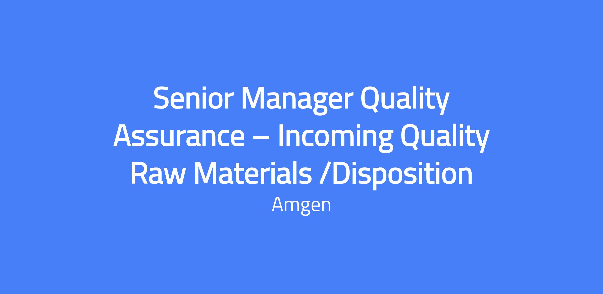 Lead a team of Quality professionals supporting the Disposition and Incoming Quality operations at our North Carolina site. Provide technical quality leadership and oversight of Disposition and Incoming Quality, partnering closely with cross-functional teams to build, enhance and sustain compliant commercial operations. Drive development and continuous improvement of the site's inspection readiness program and overall Quality Management System (QMS), ensuring compliance with Amgen standards, cGMP, and applicable regulations.