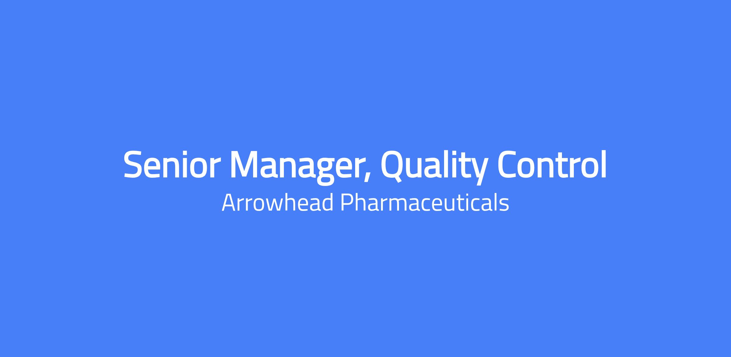 Senior Manager, Quality Control
