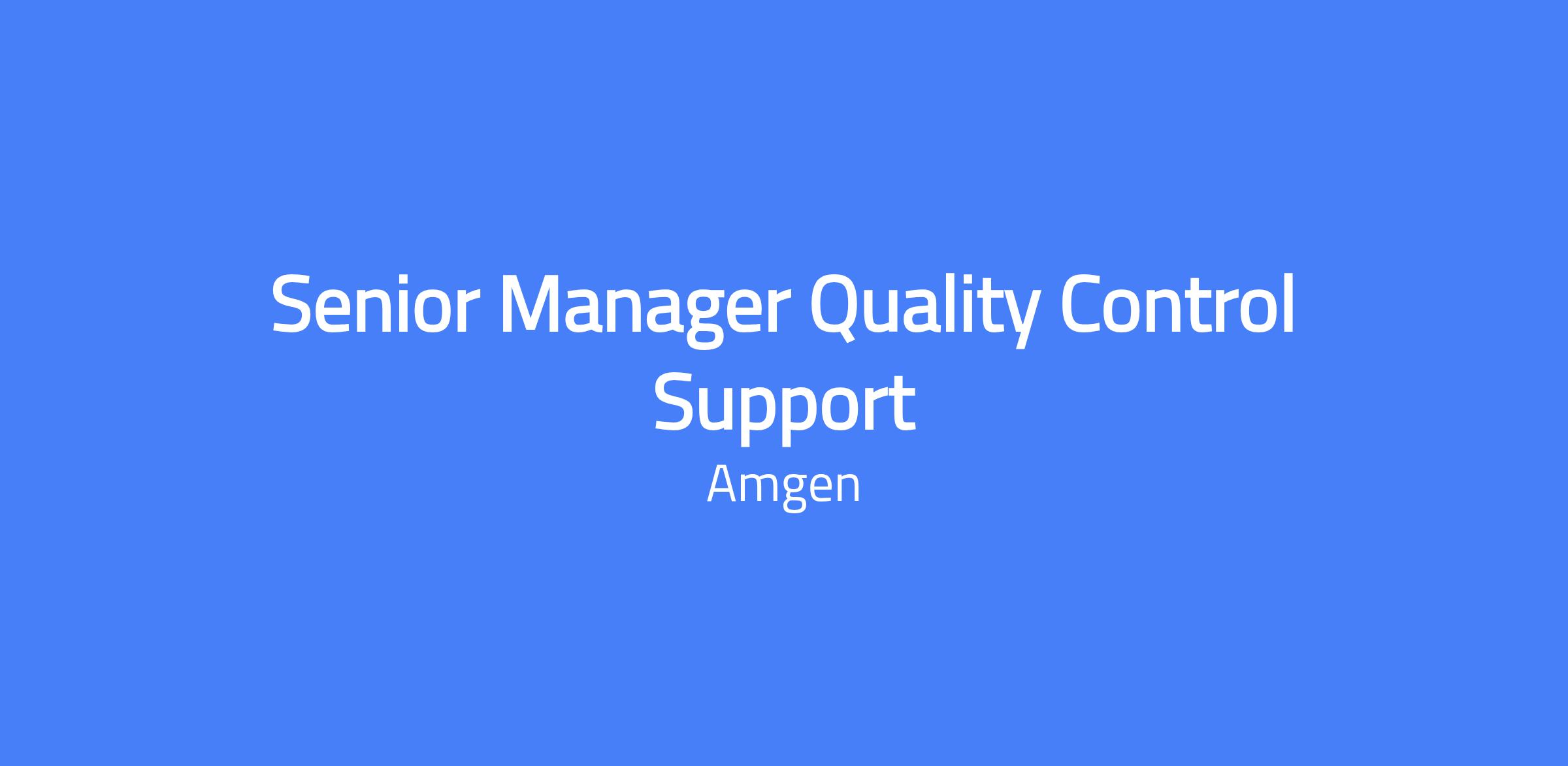 Senior Manager, Quality Control Support at Amgen's Holly Springs, North Carolina manufacturing facility. Oversees key QC support functions including laboratory systems, compliance, document management, sample lifecycle coordination, and continuous improvement initiatives, ensuring alignment with cGMP standards, regulatory expectations, and Amgen’s global quality systems.