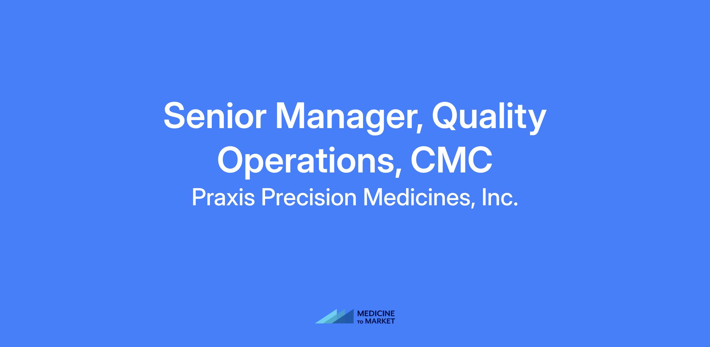 Senior Manager, Quality Operations, CMC