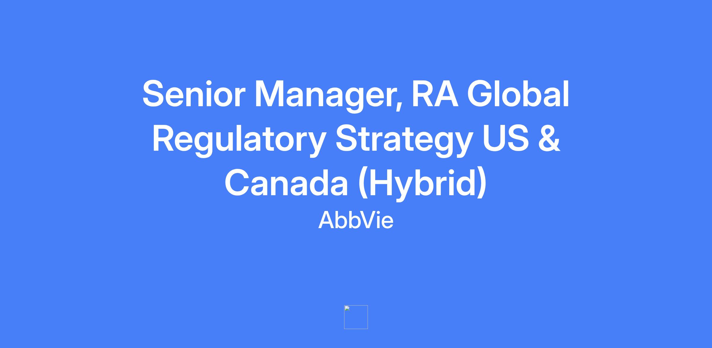 The Senior Manager, RA Global Regulatory Strategy US & Canada is responsible for the development and implementation of US and Canada regulatory strategic and tactical planning (RSTP) for assigned on market products or those products in development. Assures that regulatory strategies defined within the GRPT are effectively implemented and maintained in line with changing regulatory and business needs. This individual identifies and gathers data needed to support filings, responses to inquiries, and registration maintenance to enable commercialization of products that are developed, manufactured, or distributed to meet relevant US and Canada regulatory requirements. This is a hybrid role based at AbbVie's Lake County, IL office. The onsite expectation is typically Tuesdays, Wednesdays, and Thursdays.