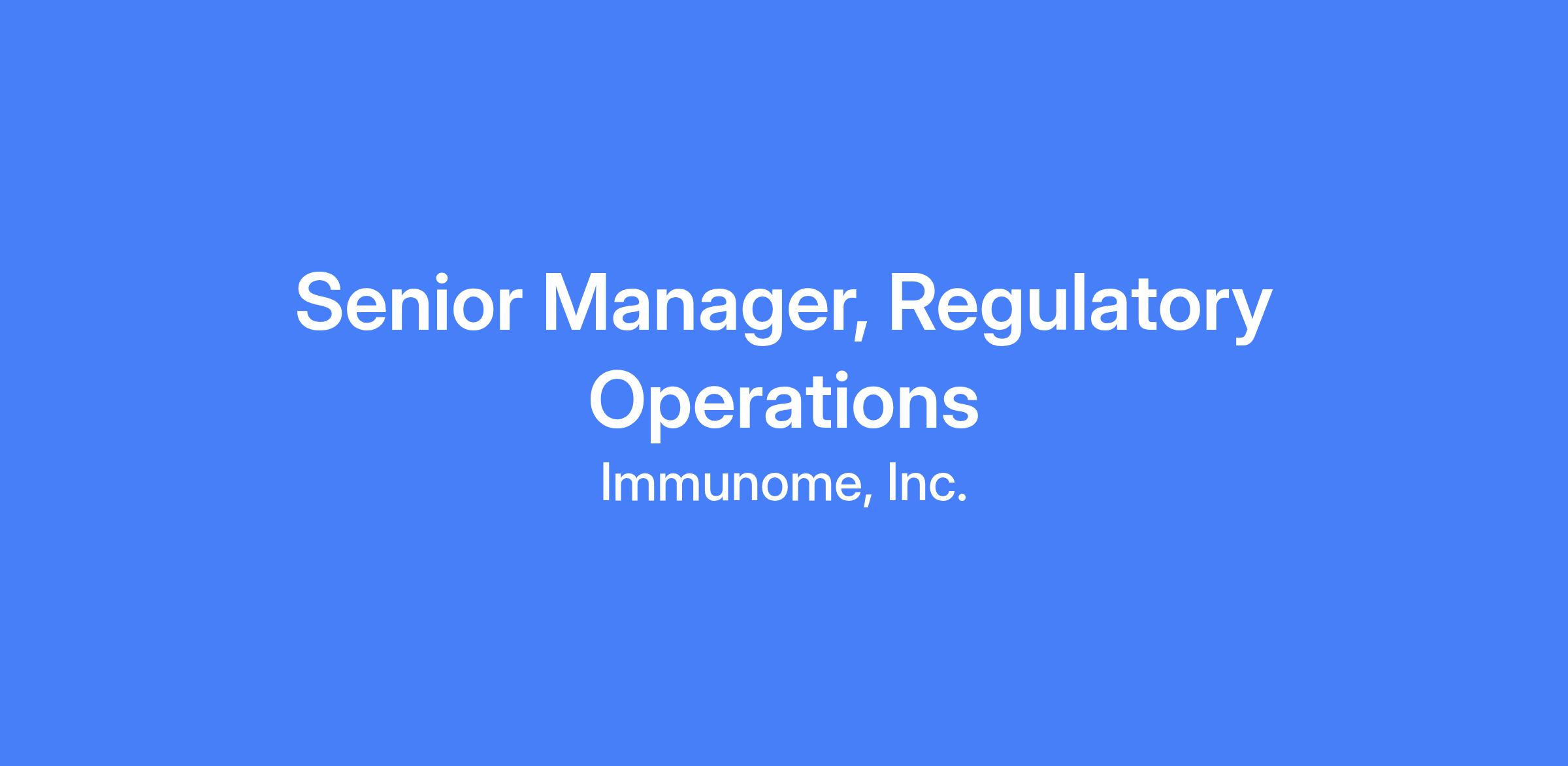 The Senior Manager, Regulatory Operations will play a critical role in leading Immunome’s regulatory systems, submissions and documentation processes across our clinical-stage oncology programs. This individual will oversee regulatory information management, publishing, and operational activities to ensure high-quality, timely submissions that meet global regulatory requirements.