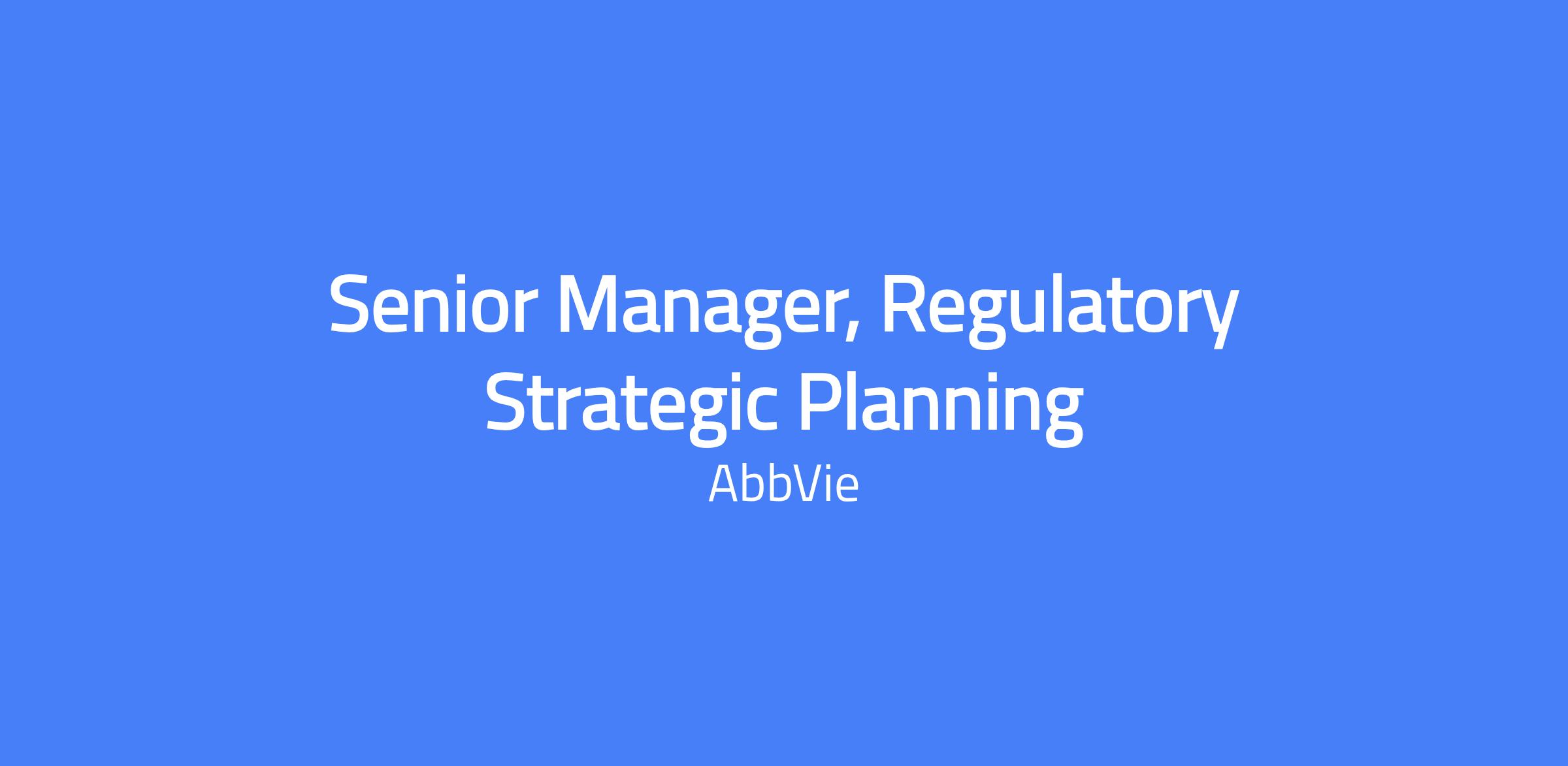 The Senior Manager, Regulatory Strategic Planning is responsible for delivering project management capabilities for cross-functional teams of medium- to high-complexity within and across the Regulatory Affairs organization. This role combines knowledge of scientific, regulatory, and business processes to drive the execution of AbbVie’s regulatory strategies, including developing and managing schedules, activities, and deliverables for Global Regulatory Product Teams (GRPTs), coordinating with stakeholders, and leading process improvement to enhance regulatory compliance and productivity.