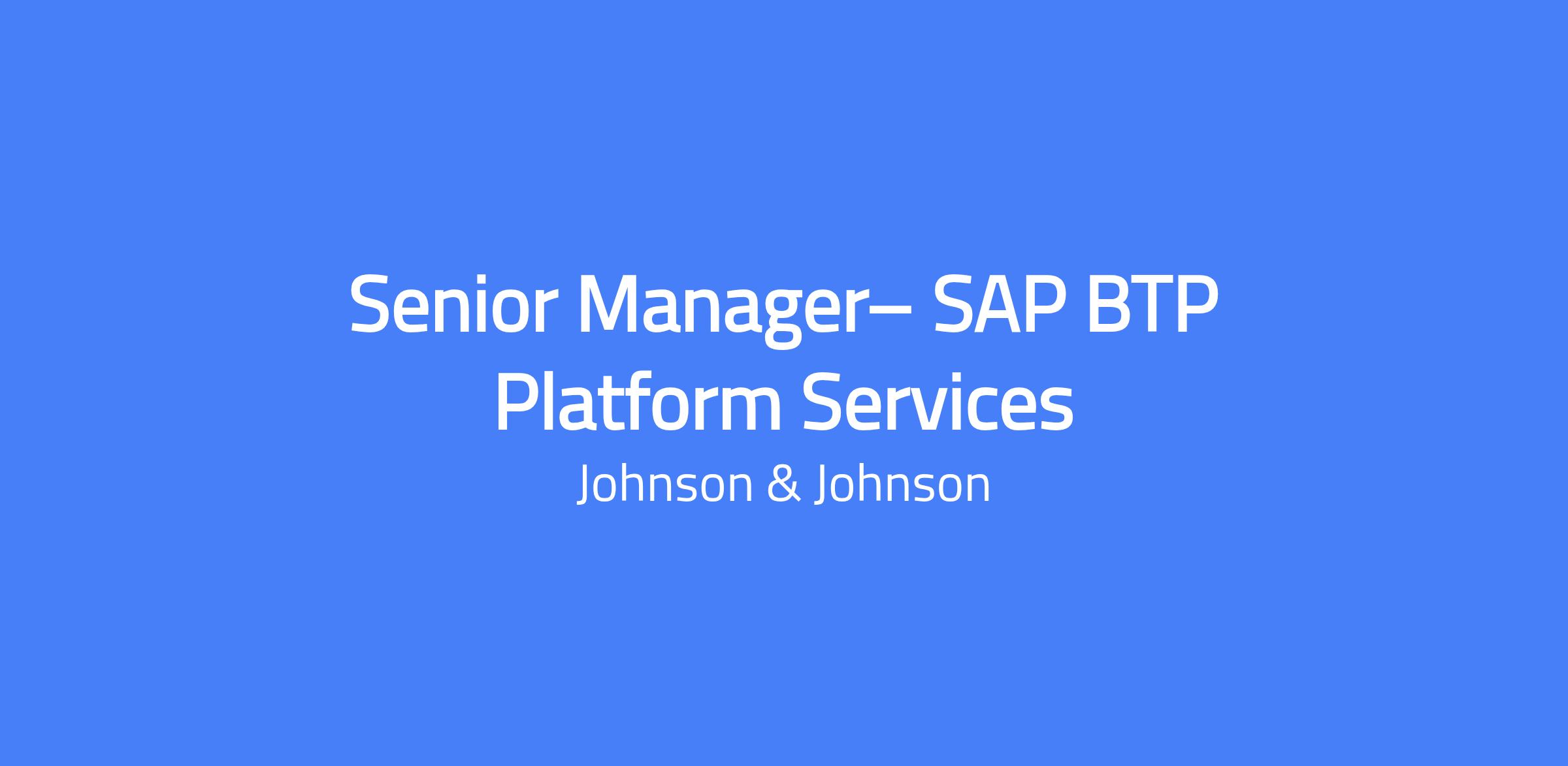 Senior Manager, SAP BTP Platform Services Maintenance and Operations, Johnson & Johnson Technology Services (JJTS), based in Raritan, NJ, supporting multiple North America SAP-Finance sector services. Reports to the Director of Advanced Technology within the TS-Supply Chain organization. Responsible for SAP BTP Platform Service Administration and Maintenance and for monitoring the overall business process, ensuring efficient and expedient recovery of services required by the business in case of disruption.