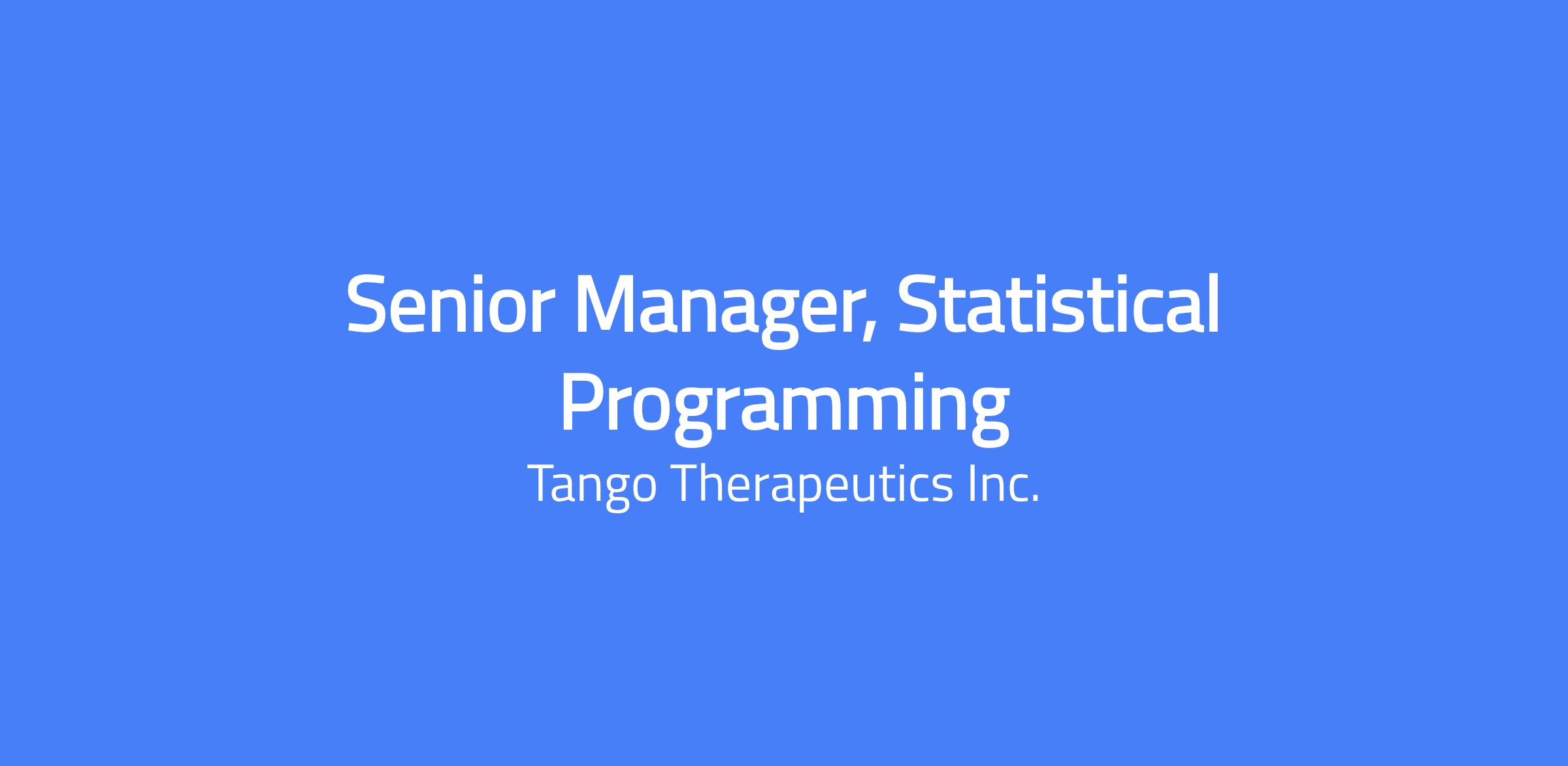 Tango has an exciting opportunity to join our growing Biometrics team as a Senior Manager, Statistical Programming, reporting to the Senior Director of Statistical Programming. In this role, you will be responsible for study-specific statistical programming activities, maintaining programming infrastructure, and ensuring compliance with SOPs to deliver high-quality, timely outputs.