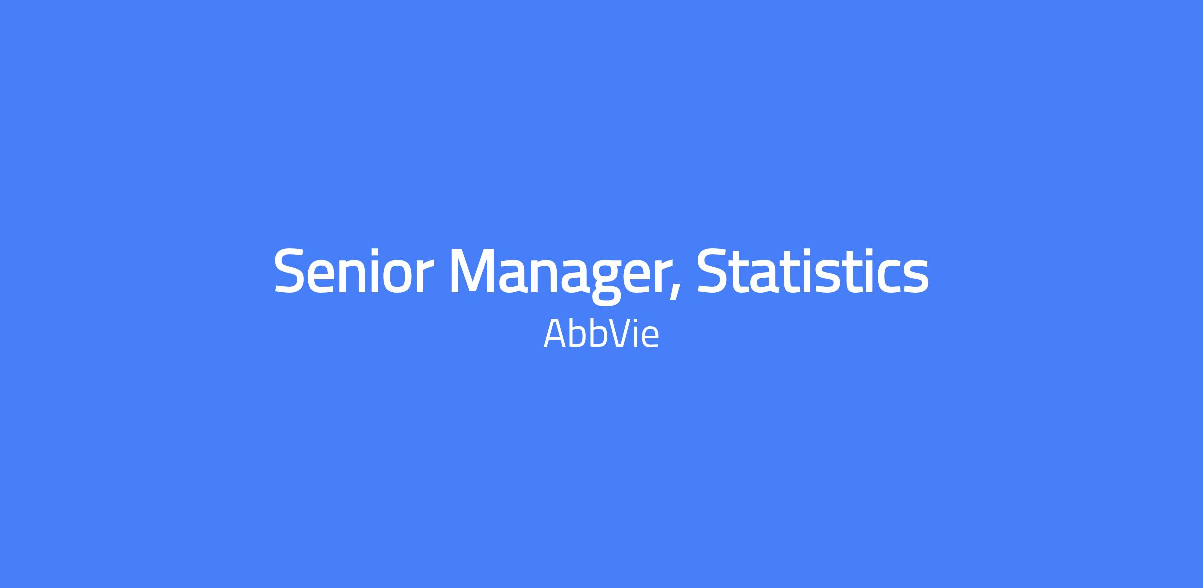 The Senior Manager, Statistics provides statistical leadership to support AbbVie’s research and development organization for assigned projects, with potential work in clinical trials, patient safety, and global medical affairs. This role requires independent work in partnership with experts across disciplines to advance medicines to patients. Responsibilities include designing and leading statistical analyses, ensuring data quality, and communicating concepts to non-statisticians.