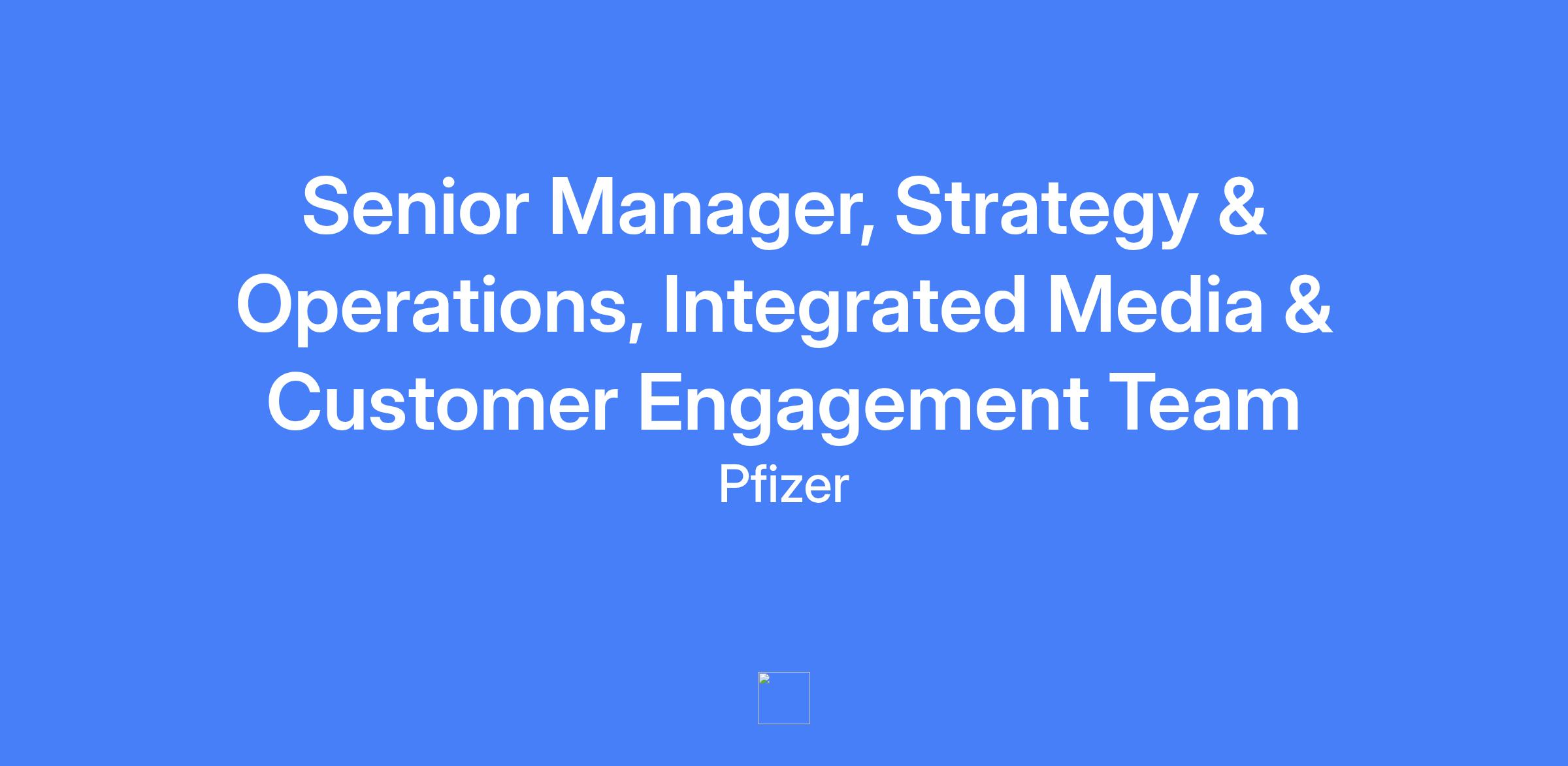 Senior Manager, Strategy & Operations, Integrated Media & Customer Engagement Team. Role focuses on leading commercial strategies, supporting development and implementation to accelerate product launches and improve patient impact.