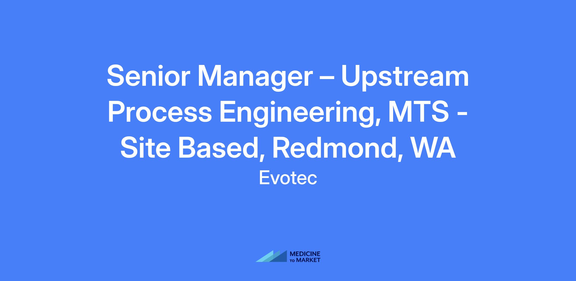 Job Title: Senior Manager – Upstream Process Engineering, MTS