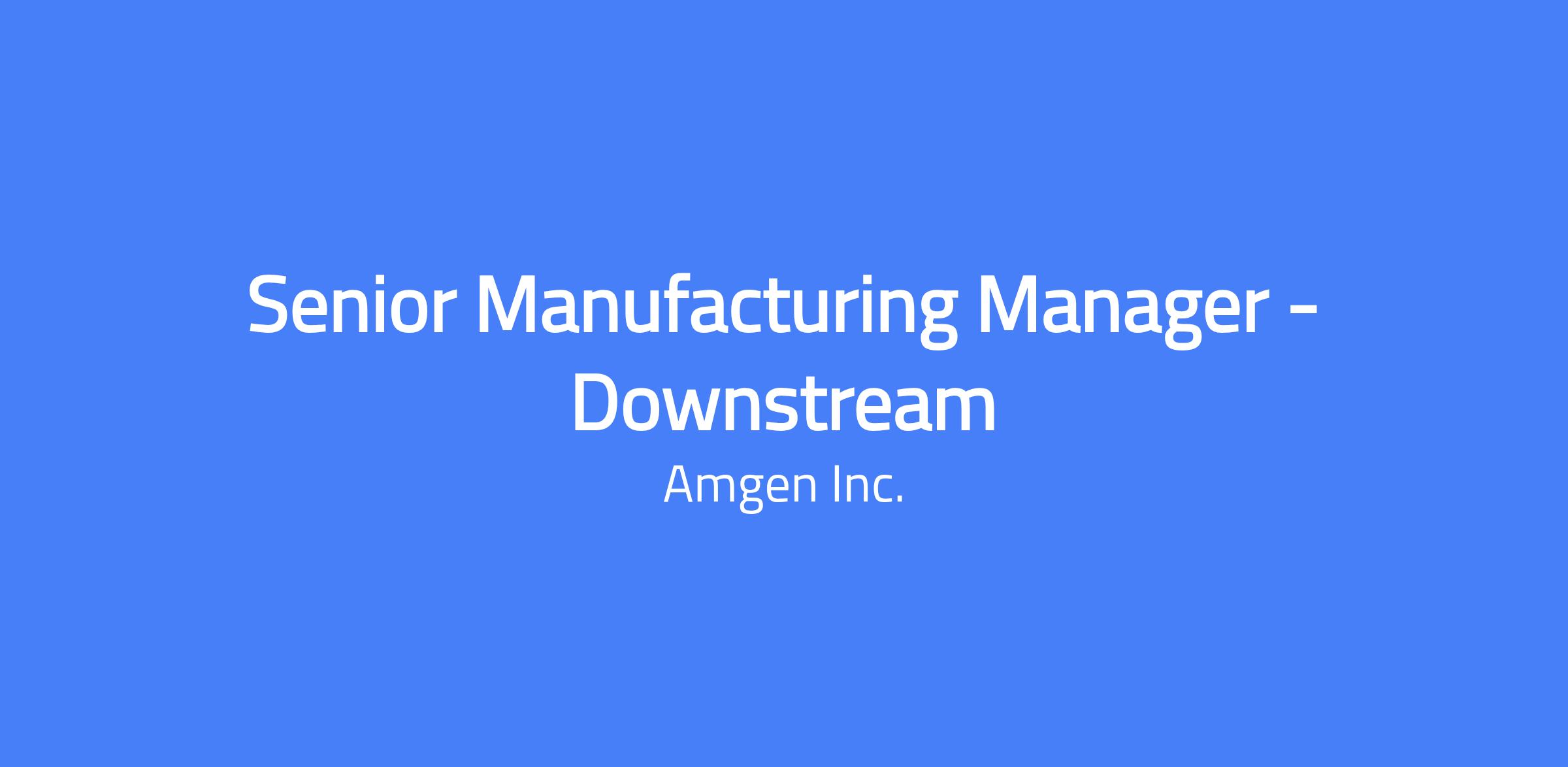Career Category Manufacturing Job Description HOW MIGHT YOU DEFY IMAGINATION?⯠Youâve worked hard to become the professional you are today and are now ready to take the next step in your career. How will you put your skills, experience, and passion to work toward your goals? At Amgen, our shared missionâto serve patientsâdrives all that we do. It is key to our becoming one of the worldâs leading biotechnology companies, reaching over 10 million patients worldwide. Come do your best work alongside other innovative, driven professionals in this meaningful role. Be part of Amgen's newest and most advanced drug substance manufacturing plant. The Amgen FleX Batch facility combines the latest in disposable technologies with traditional stainless-steel equipment to allow for maximum flexibility in operations. The FleX Batch facility not only features the best in-class drug substance manufacturing technologies with embedded industry 4.0 capabilities, but it also integrates sustainability innovations to reduce carbon and waste, as part of Amgen's plan to be a carbon-neutral company by 2027. Senior Manager: Manufacturing Live⯠What you will do⯠Letâs do this. Letâs change the world. As a Senior Manager of Manufacturing, you will provide leadership and guidance to the team responsible for 24/7 manufacturing operations in downstream purification. In this vital role as a member of the Manufacturing leadership team, the Sr. Manager of Manufacturing will collaborate cross-functionally to enable the GMP to manufacture drug substance in a new manufacturing facility. This role is responsible for coaching and developing Downstream Front-Line Managers who oversee staff supporting direct drug substance production. Additionally, you will be accountable for organizational design of the manufacturing team, hiring and development of staff, and ensure staff is compliant with training programs to support safe and reliant operations. The position will also provide leadership and oversight for operational readiness activities to ensure successful facility start-up and sustained manufacturing performance. Responsibilities: Develop and retain a diverse and high performing team in alignment with operational readiness schedules to ensure successful startup and commercial GMP operations Mature the siteâs safety and quality culture of the department and champion continued improvement Collaborate as one team of all manufacturing support groups (Quality, Process Development, Engineering, Supply Chain, and network partners) Provide support to troubleshoot, identify, and resolve issues as needed and manage call coverage for 24/7 operation Provide technical leadership for the investigation of deviations and the development of corrective actions Develop and implement departmental strategy and plans that are aligned with the broader organizational strategy and deliver continuous improvement Lead and support regulatory inspections for areas of responsibilities including evaluating complex compliance issues and developing playbooks for the inspections Deliver against organizational financial commitments while championing a lean philosophy Win What we expect of you We are all different, yet we all use our unique contributions to serve patients. The experienced professional we seek is a collaborative partner with these qualifications. Basic Qualifications: Doctorate degree and 2 years of Manufacturing & Operations experience Or Masterâs degree and 6 years of Manufacturing & Operations experience Or Bachelorâs degree and 8 years of Manufacturing & Operations experience Or Associate's degree and 10 years of Manufacturing & Operations experience Or High School diploma/GED and 12 years of Manufacturing & Operations experience AND 2 years of managerial experience directly managing people and/or leadership experience leading teams, projects, programs or directing the allocation of resources Preferred Qualifications Demonstrated managerial experience in a GMP manufacturing drug substance plant Demonstrated experience in applying Operational Excellence and Lean Manufacturing Cross-functional work experience in either Process Development, Quality or Engineering Excellent communication skills, drive, sense of urgency, energy level and problem-solving abilities Demonstrated ability to forge and maintain strong relationships with other functional areas Ability to effectively develop and coach staff and positively advance the culture of an organization Thrive What you can expect of us As we work to develop treatments that take care of others, we also work to care for our teammatesâ professional and personal growth and well-being. Vast opportunities to learn and move up and across our global organization Diverse and inclusive community of belonging, where teammates are empowered to bring ideas to the table and act Generous Total Rewards Plan comprising health, finance and wealth, work/life balance, and career benefits Apply now for a career that defies imagination In our quest to serve patients above all else, Amgen is the first to imagine, and the last to doubt. Join us. careers.amgen.com #AmgenNorthCarolina . Salary Range 136,227.80USD -184,308.20 USD Amgen is committed to unlocking the potential of biology for patients suffering from serious illnesses by discovering, developing, manufacturing and delivering innovative human therapeutics. This approach begins by using tools like advanced human genetics to unravel the complexities of disease and understand the fundamentals of human biology. Amgen focuses on areas of high unmet medical need and leverages its biologics manufacturing expertise to strive for solutions that improve health outcomes and dramatically improve people's lives. A biotechnology pioneer since 1980, Amgen has grown to be one of the world's leading independent biotechnology companies, has reached millions of patients around the world and is developing a pipeline of medicines with breakaway potential. For more infor