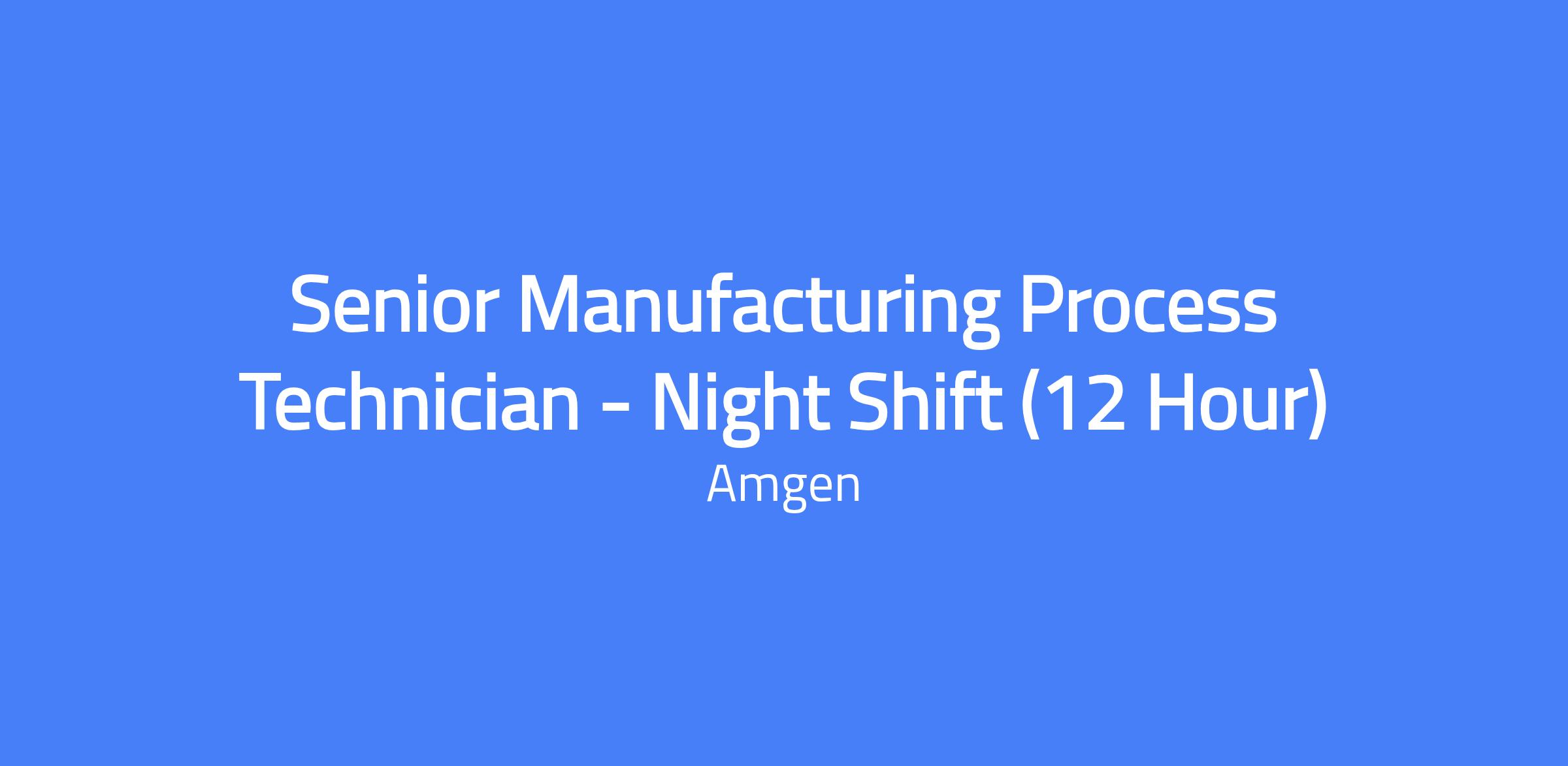 Senior Manufacturing Process Technician on night shift (12-hour) operating automated packaging manufacturing equipment, troubleshooting across multiple systems, and ensuring product quality in a fast-paced GMP environment.