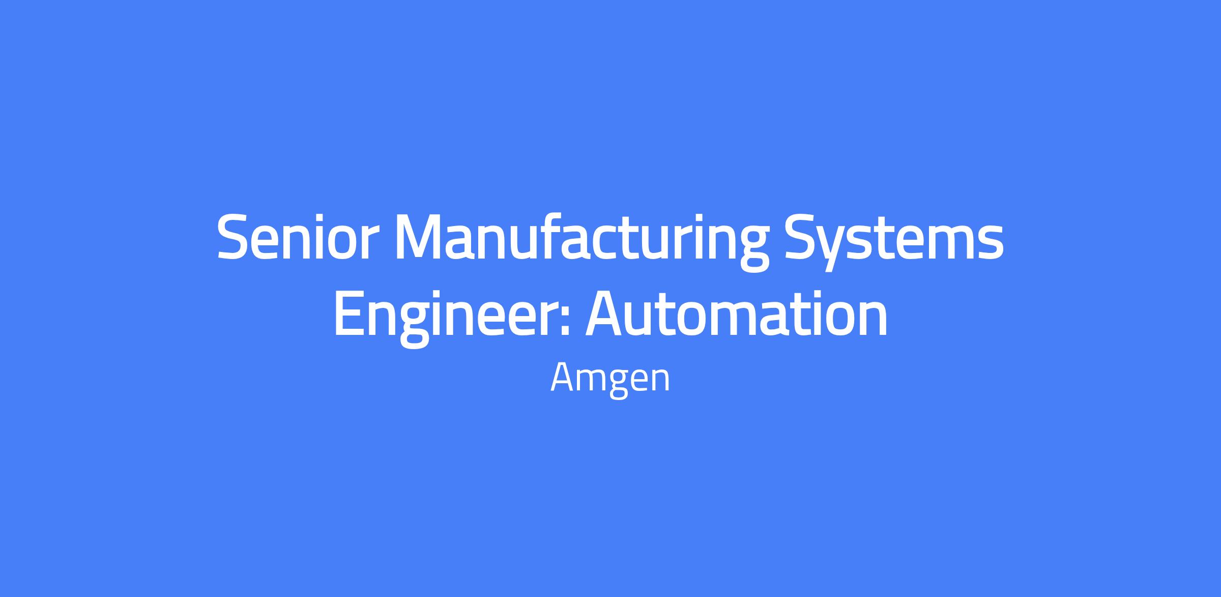 Senior Manufacturing Systems Engineer – Automation. Provide automation technical leadership to a group of automation engineers who build and maintain automation systems and platforms supporting GMP Drug Substance Plant Operations. Work with the Facilities & Engineering Automation team and capital projects to deliver robust process automation for the new plant, integrating lifecycle management and Operational Excellence across multiple platforms.