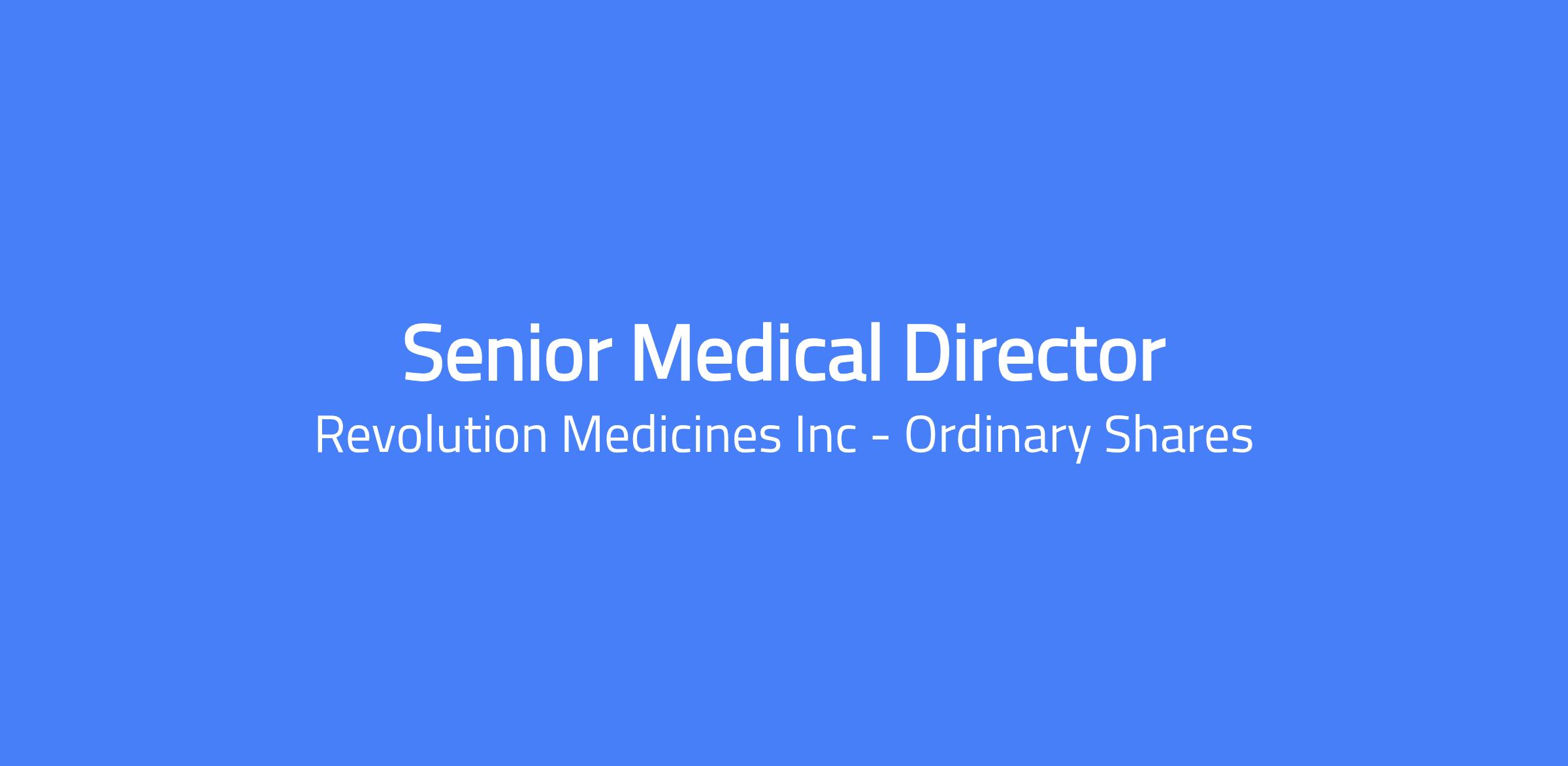 Revolution Medicines Senior Medical Directors are responsible for formulating clinical development strategy and ensuring effective execution of this plan for the assigned molecule(s)/combination(s)/indication(s). Revolution Medicines has a robust research pipeline from discovery to clinic, and we are working rigorously to leverage this for the greatest possible impact for patients. As a clinician and scientist, you will be bridging the basic research with clinical development strategy in this scientifically rich environment.
