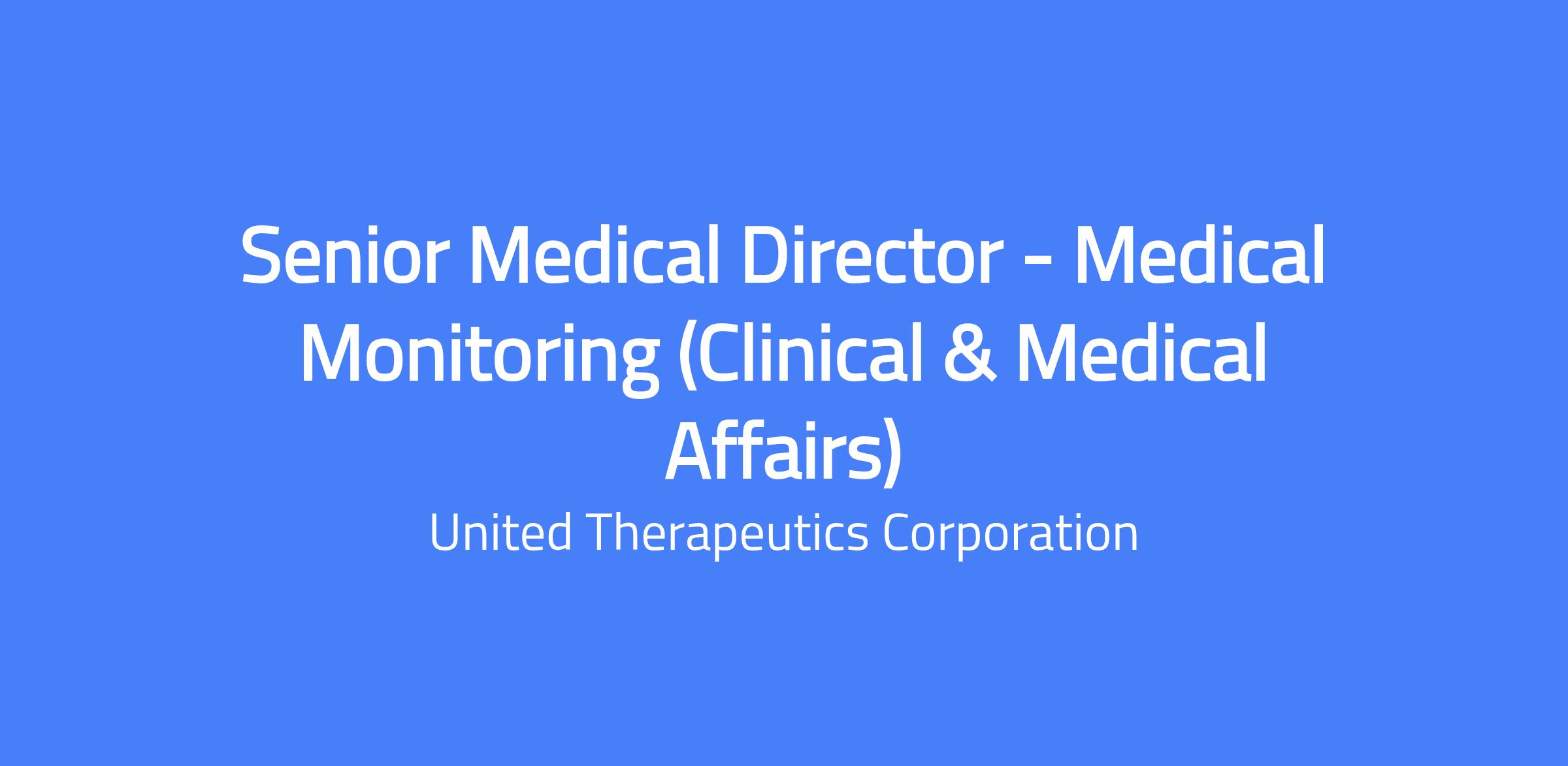 Senior Medical Director - Medical Monitoring (UT Clinical & Medical Affairs)