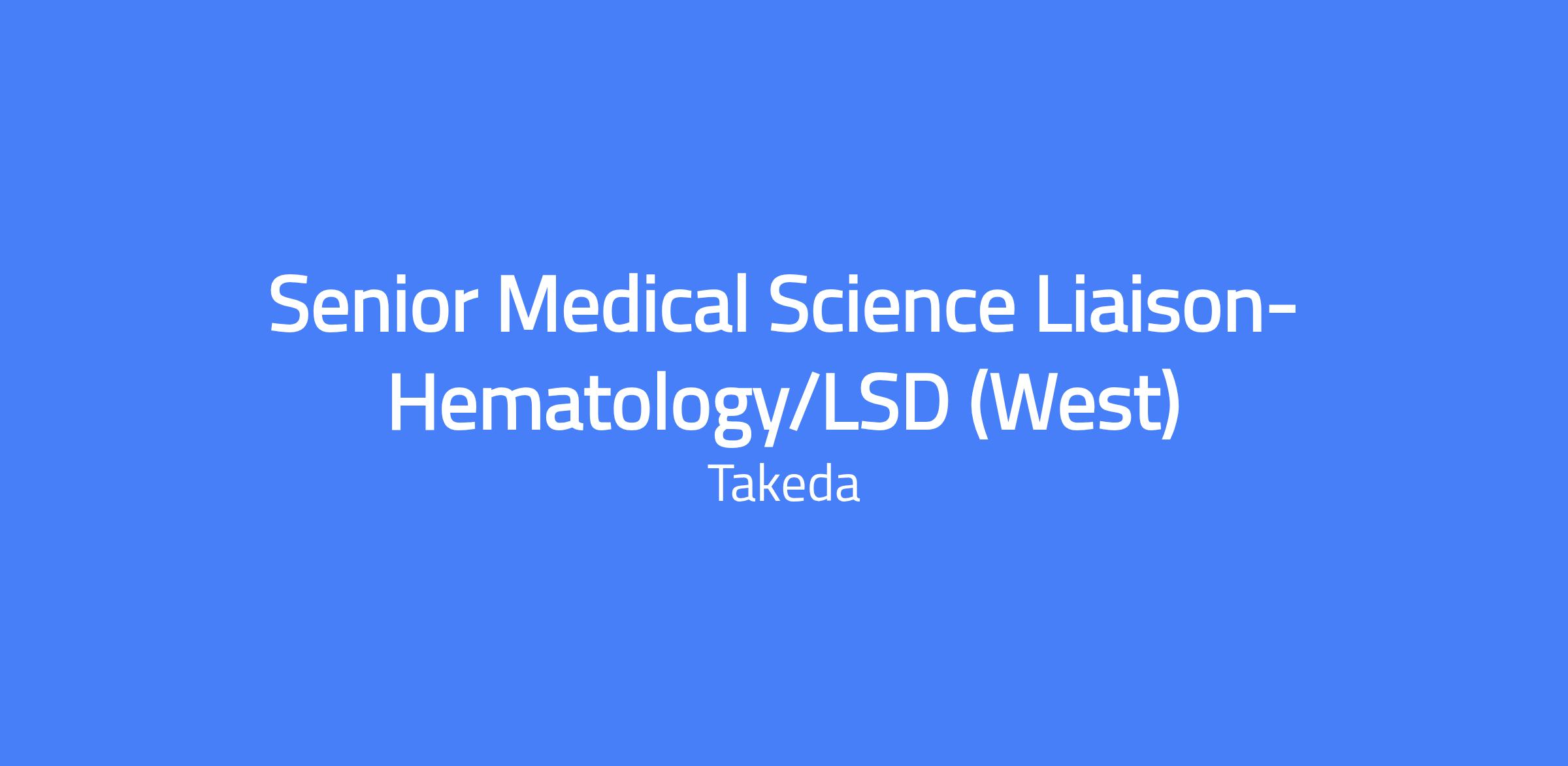 Senior Medical Science Liaison (Field-based, West territory; must reside in territory: WA, OR, CA, NV, ID, MT, WY, UT, CO)