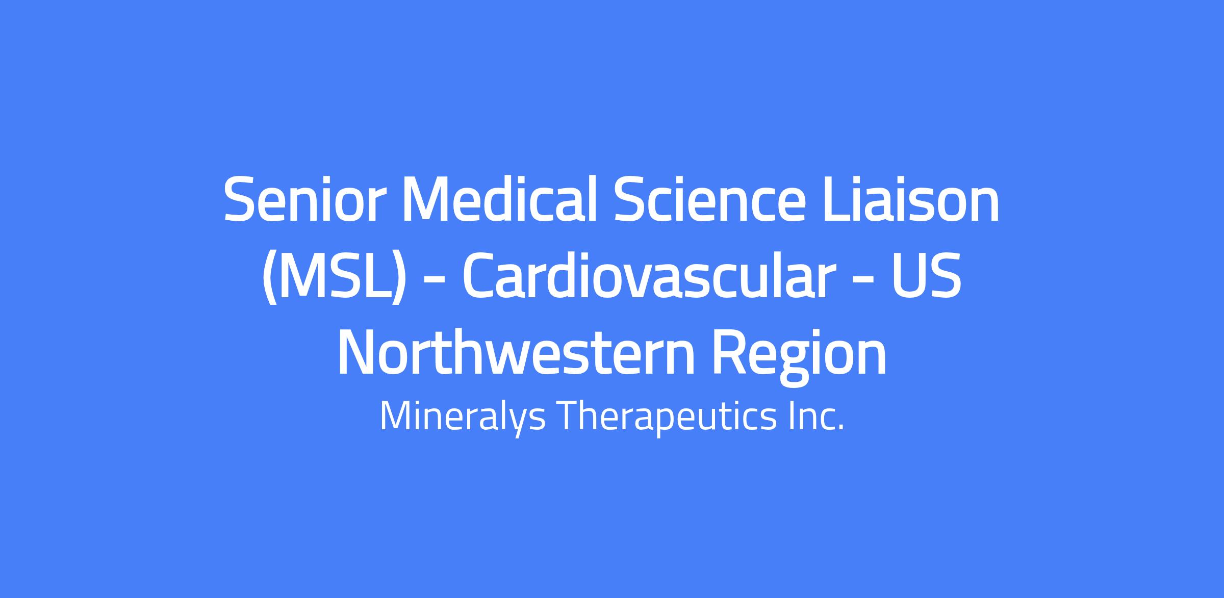 These field-based medical experts will support the US Medical Affairs team and will focus on establishing, developing, and maintaining strong collaborative relationships through scientific engagement with Key Opinion Leaders and Healthcare Practitioners within the assigned territory. This field position requires a strong background in the pharmaceutical industry, understanding the complexities of healthcare systems, and requires experience in an MSL or MSL like role in cardiovascular disease.