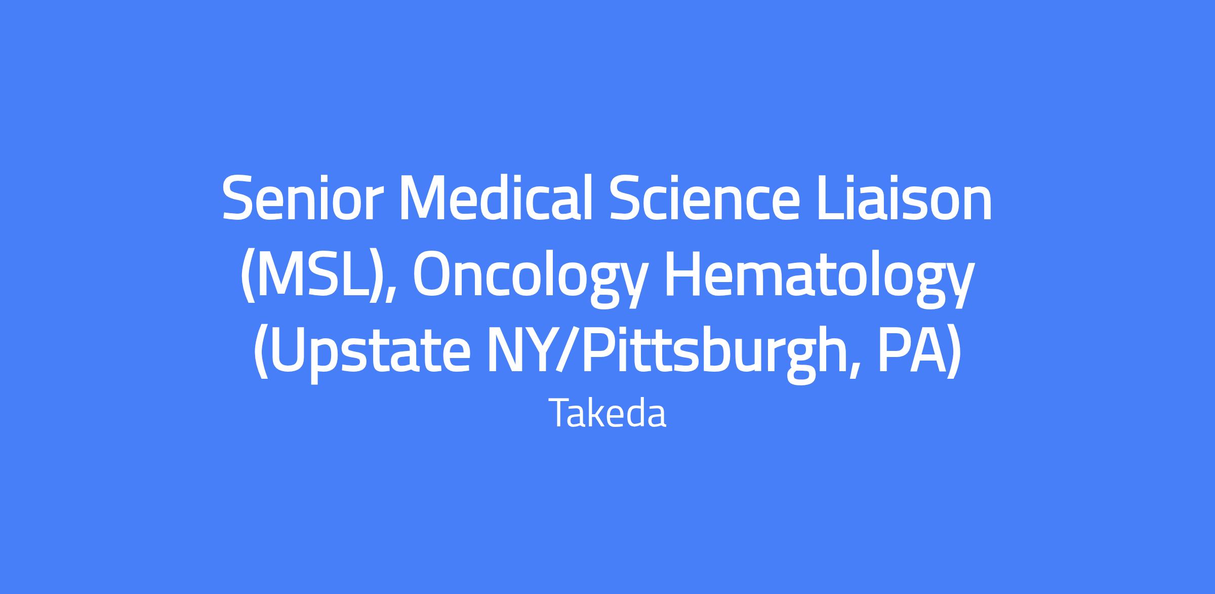Senior Medical Science Liaison (MSL) in Oncology/Hematology covering Upstate New York and Pittsburgh, PA. This field-based role supports the development and lifecycle management of Takeda Oncology medicines, engaging scientifically with key opinion leaders to share accurate, non-promotional information. The preferred location is Upstate NY or Western PA; residence in the territory is required.