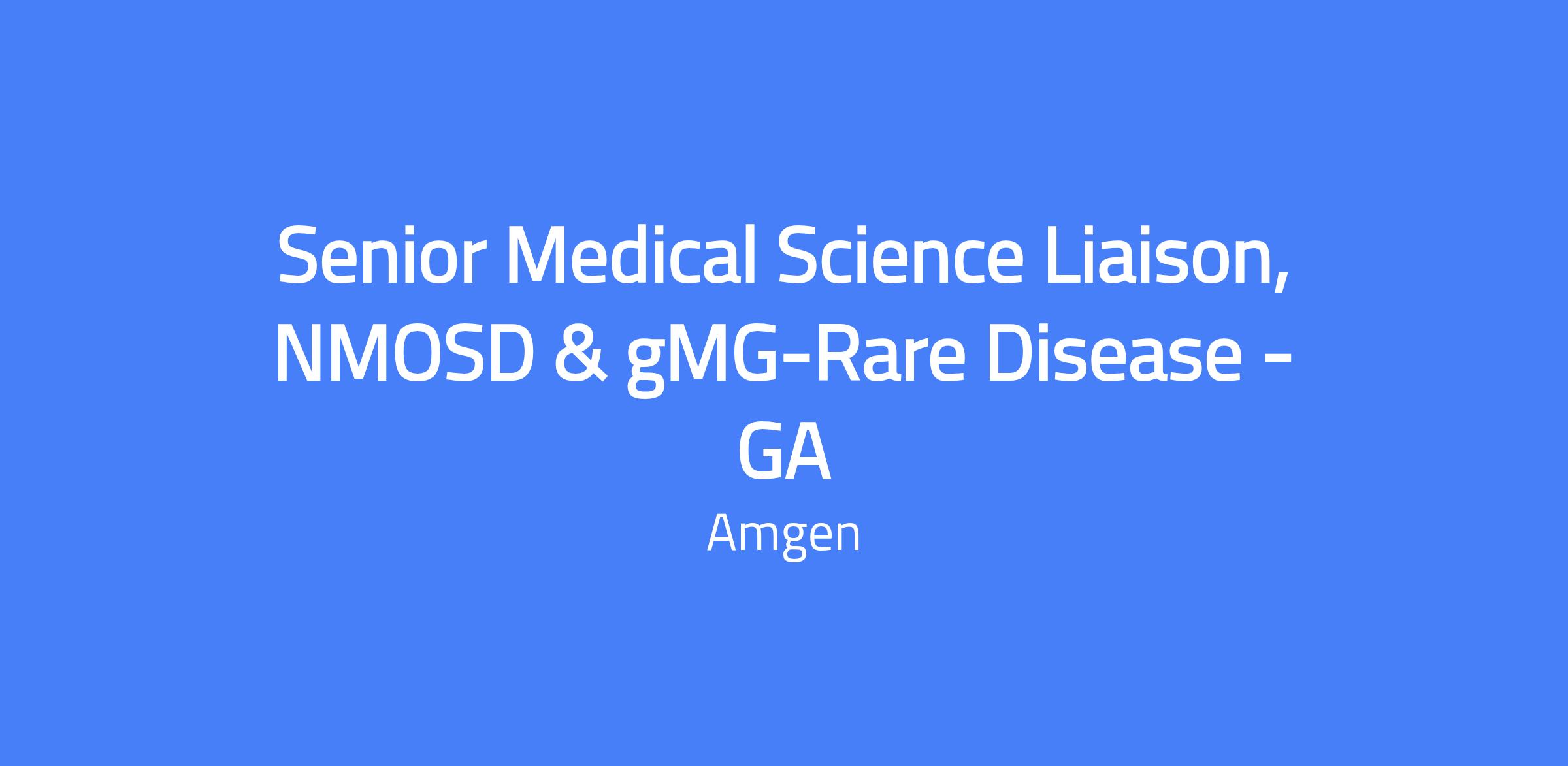 Senior Medical Science Liaison for NMOSD & gMG-Rare Disease in Georgia. You will serve as a scientific liaison to the medical community, establishing, developing, and maintaining relationships with leading experts and clinicians across the United States to communicate scientific information and support medical strategy.