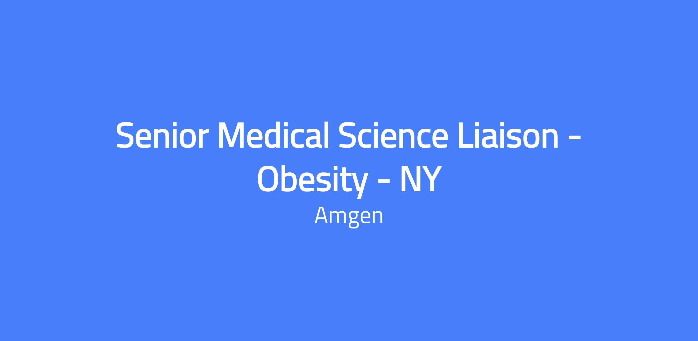 Senior Medical Science Liaison for Obesity in NY. Territory includes Manhattan and Long Island. The Obesity General Medicine Senior MSL is a field-based position within the U.S. Medical team reporting to the Obesity MSL Lead. The MSL serves as the primary scientific/clinical resource for Opinion Leaders, Population Health Decision Makers, and other healthcare providers to communicate data and support patient outcomes.
