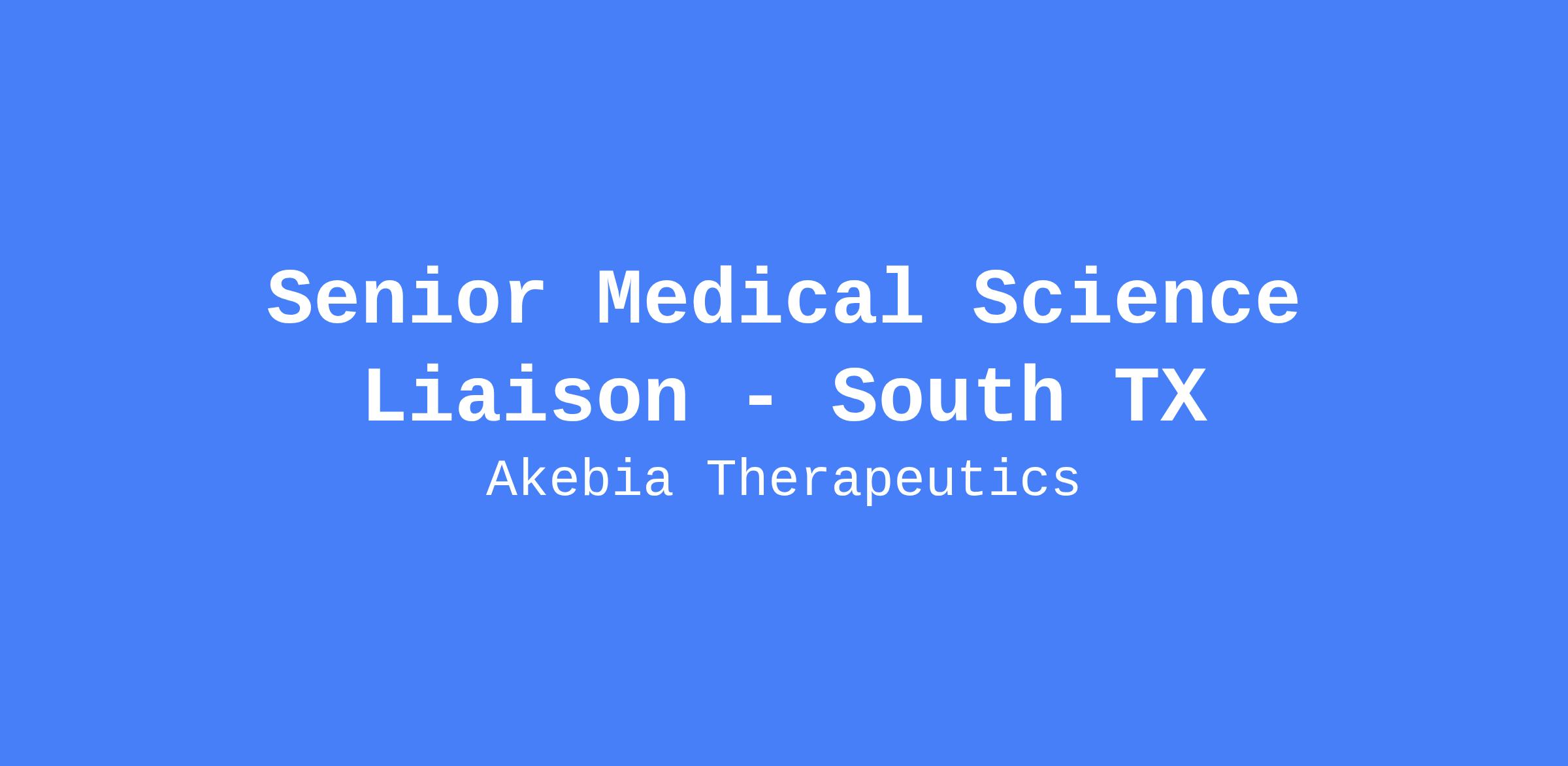 As a field-based medical expert, the Senior Medical Science Liaison supports Akebia’s products and therapeutic areas by advancing scientific and collaborative relationships and acting as a conduit for timely translation and communication of knowledge with key members of external healthcare communities and internal stakeholders towards optimized patient outcomes.