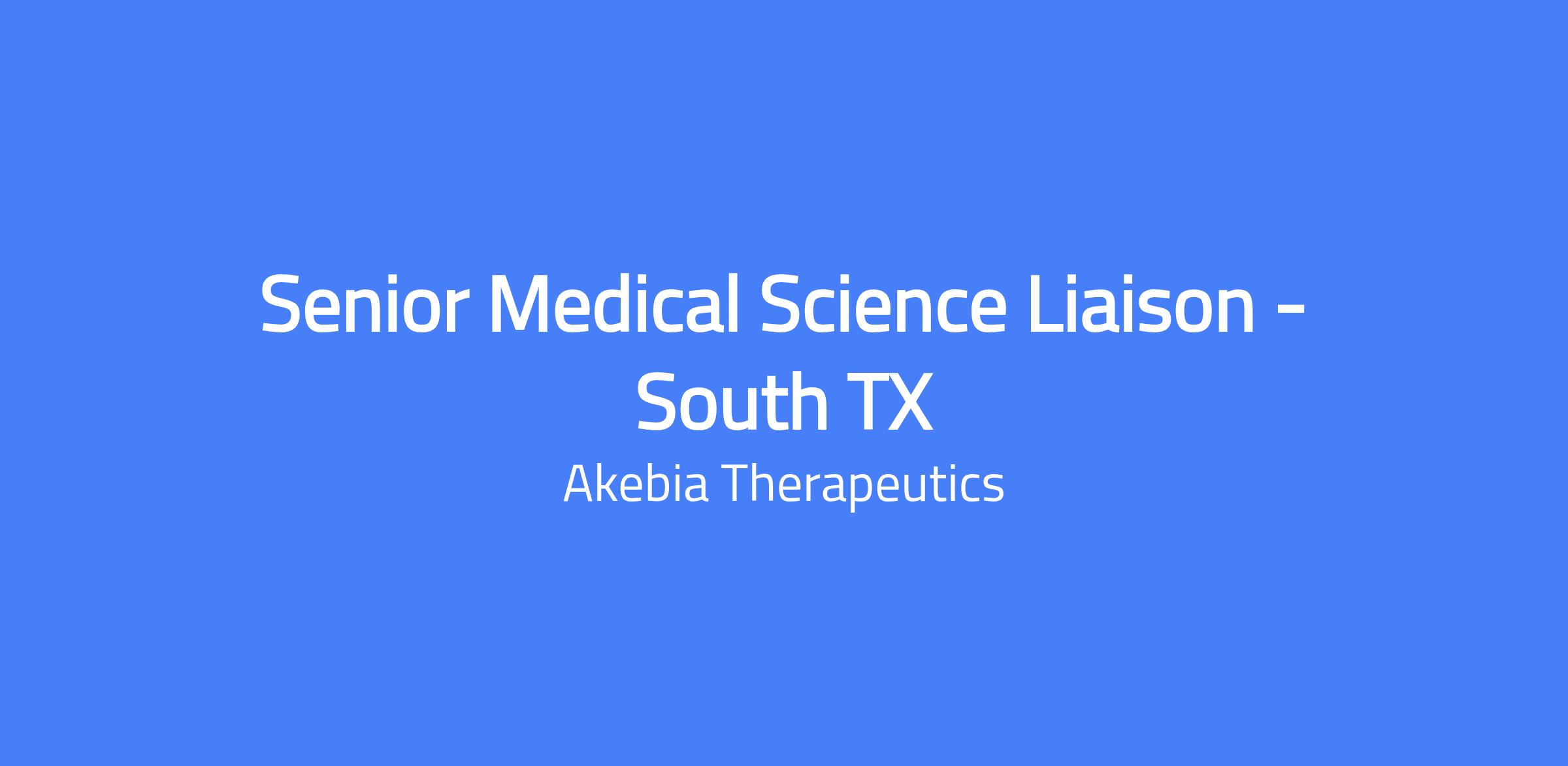 As a field-based medical expert, the Senior Medical Science Liaison supports Akebia’s products and therapeutic areas by advancing scientific and collaborative relationships and acting as a conduit for timely translation and communication of knowledge with key members of external healthcare communities and internal stakeholders towards optimized patient outcomes.