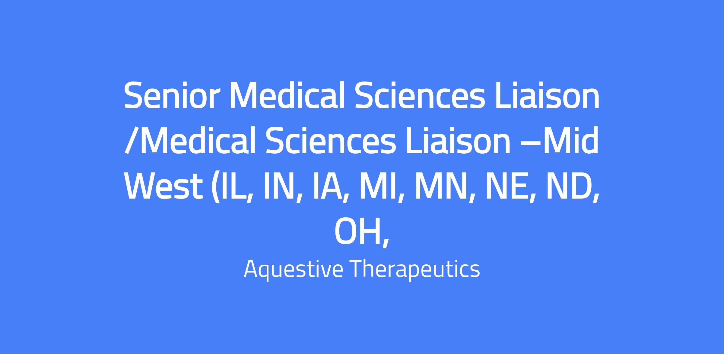 Senior Medical Sciences Liaison /Medical Sciences Liaison –Mid West (IL, IN, IA, MI, MN, NE, ND, OH,