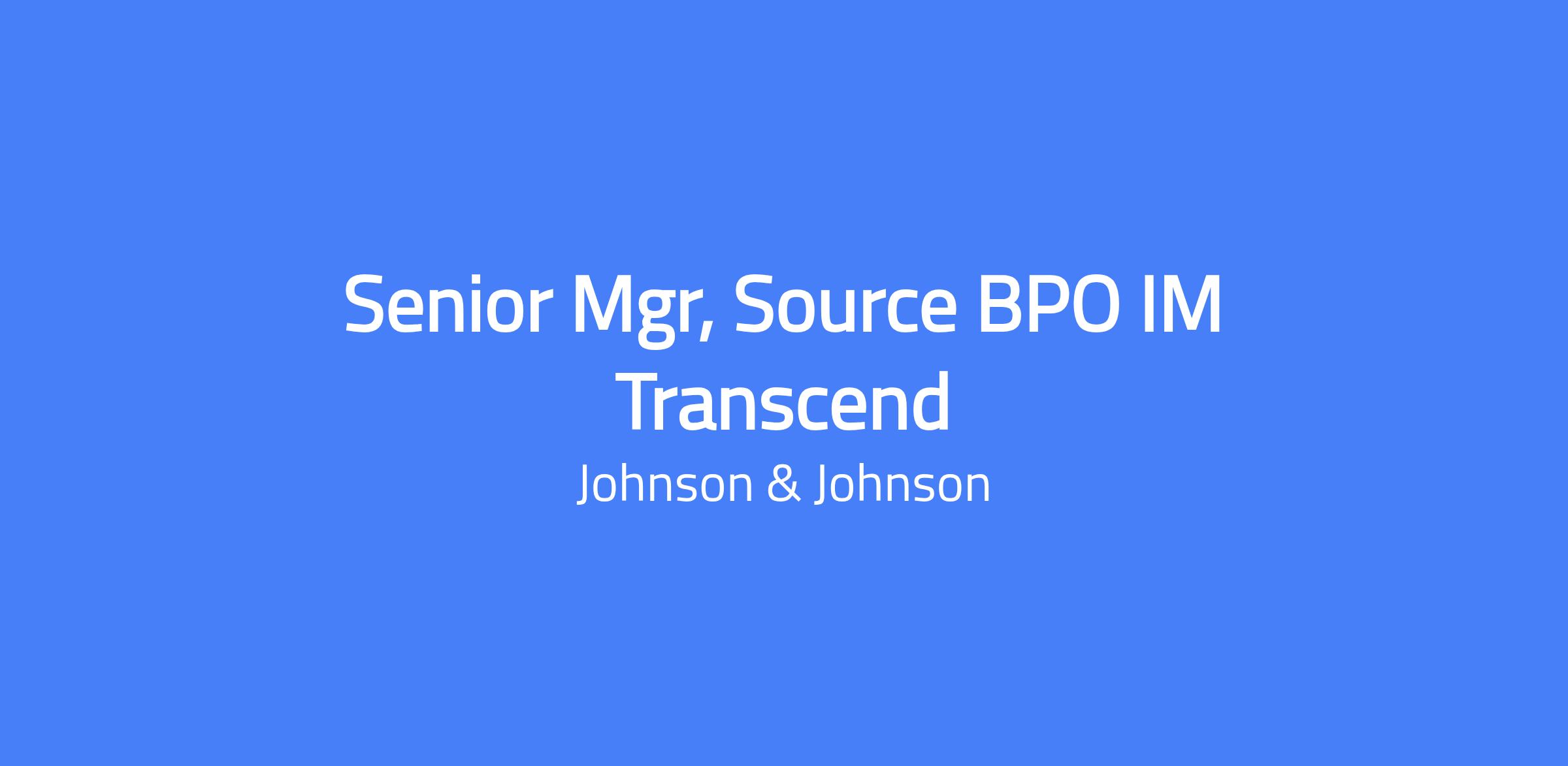 The Senior Manager, Source BPO IM Transcend leads the Procurement/Source Process Design for the IM Transcend program, independently spearheading the development of Direct and Indirect Procurement and Purchase-to-Pay processes. The role requires critical thinking, cross-functional collaboration, and the ability to influence business partners at all levels to achieve transformation goals. This onsite/hybrid position supports postings across multiple locations: Raritan, NJ; Titusville, NJ; Belgium, Ireland & Italy; and Switzerland.