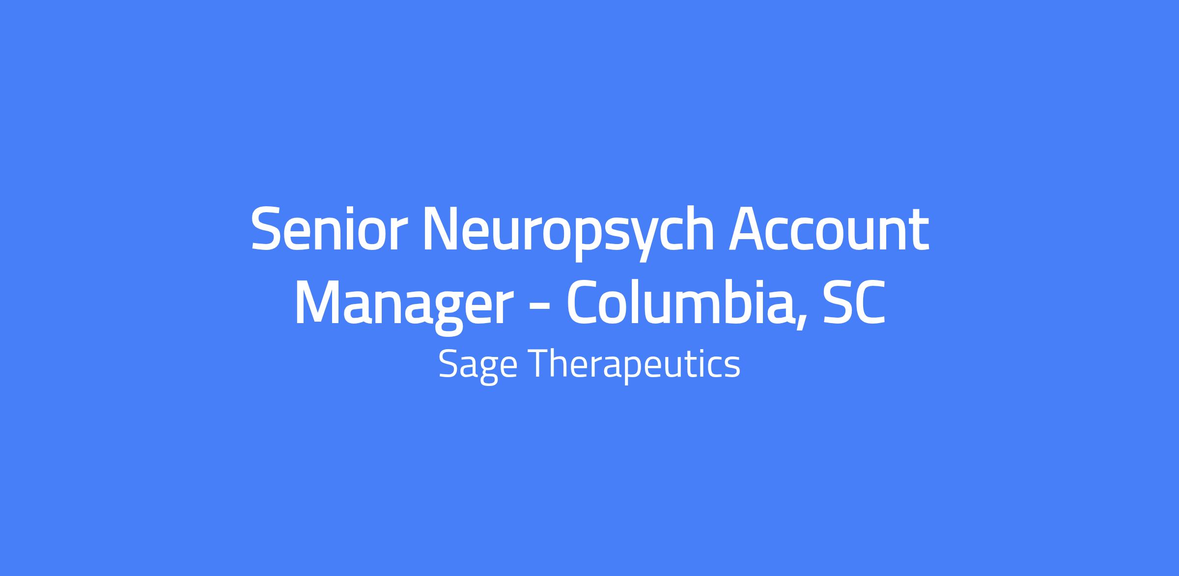 Senior Neuropsych Account Manager in Columbia, SC responsible for driving a product launch in postpartum depression (PPD), leading territory sales strategy, analyzing business drivers, building cross-functional partnerships, and collaborating with local key opinion leaders.