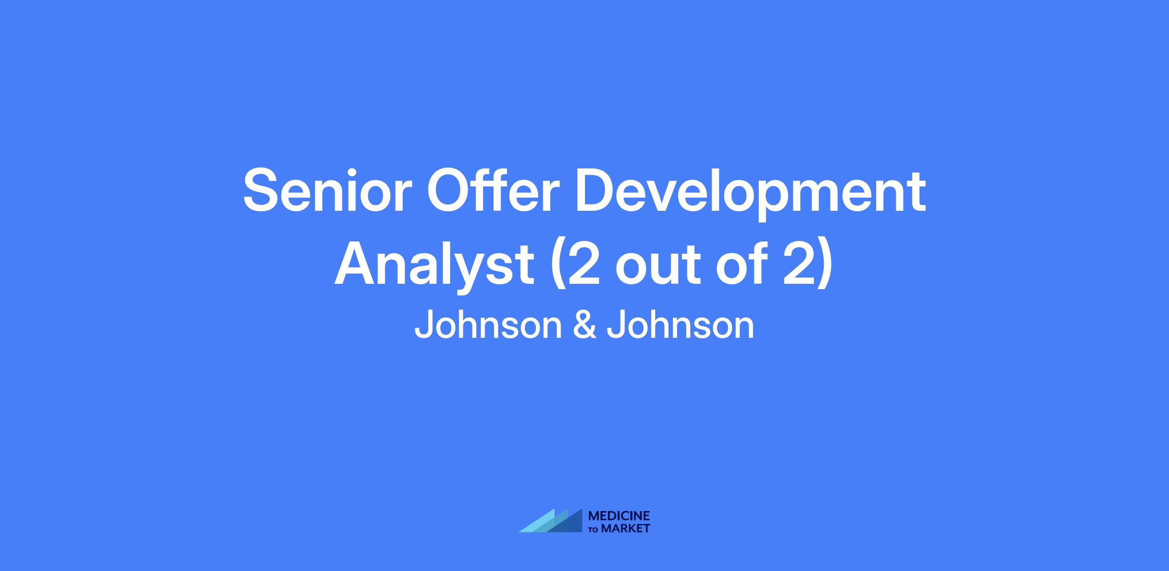 Senior Offer Development Analyst for Johnson & Johnson MedTech Orthopedics. Based in Raynham, MA with consideration to Cincinnati, OH; West Chester, PA; Warsaw, IN; and Raritan, NJ. Responsible for developing offers including products, pricing, compliance requirements, and financial terms and conditions for MedTech customers, collaborating with cross-functional partners to deliver strategic, profitable offers.