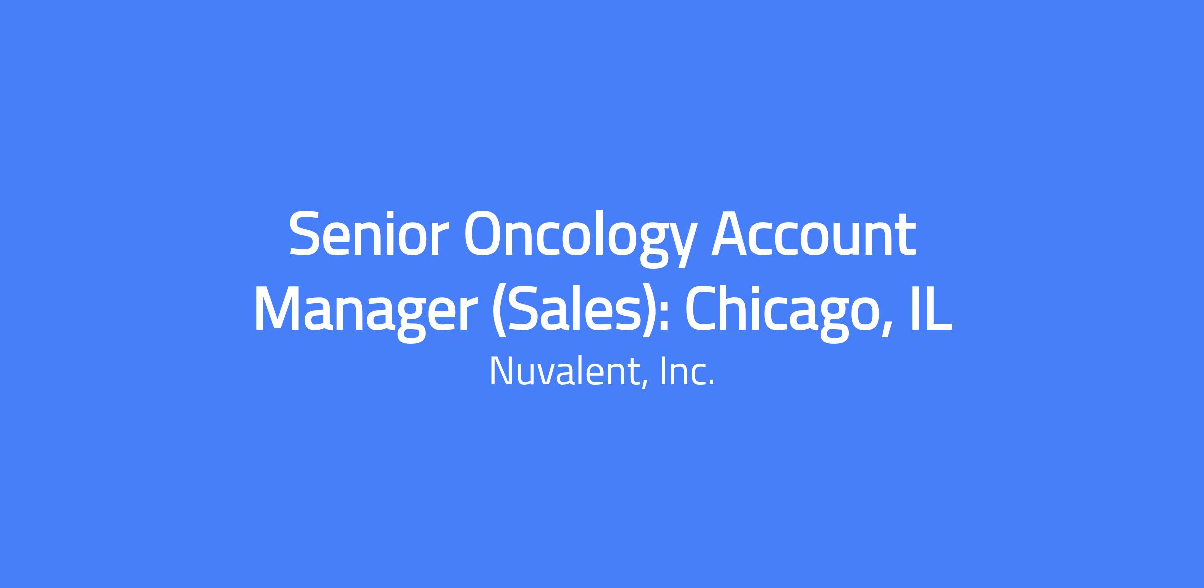 Senior Oncology Account Manager (Sales) will contribute to the territory's sales objectives by performing assigned sales activities and providing physicians, pharmacists, nurses, and other healthcare professionals with information and access to Nuvalentโs products to support appropriate prescribing. The role will implement marketing strategies and plans in a compliant manner to achieve short-term and long-term objectives, manage the territory and administrative requirements efficiently, and maintain full compliance with drug laws and regulations when representing Nuvalent and its products. This is a field-based role covering the Great Lakes territory, including Chicago, IL.