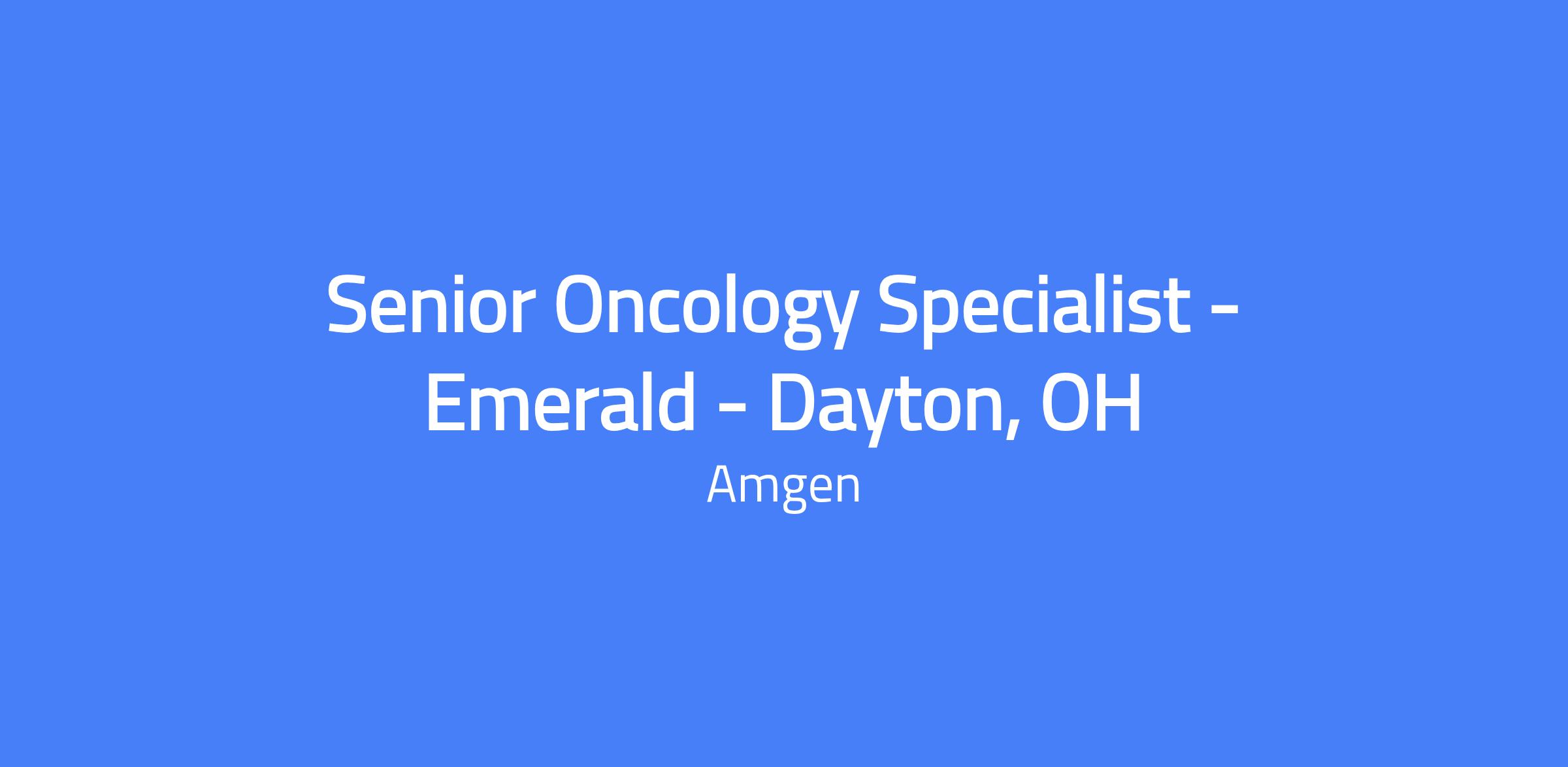 Senior Oncology Specialist for the Emerald territory in Dayton, OH (territory includes Dayton, Toledo, Lima, Findlay). You will be the primary customer contact, providing current and comprehensive clinical knowledge of Amgen's oncology products and communicating their clinical and economic benefits to medical professionals. You will develop and execute a comprehensive territory plan, manage accounts and access, and collaborate with cross-functional teams to drive patient care and achieve sales targets.