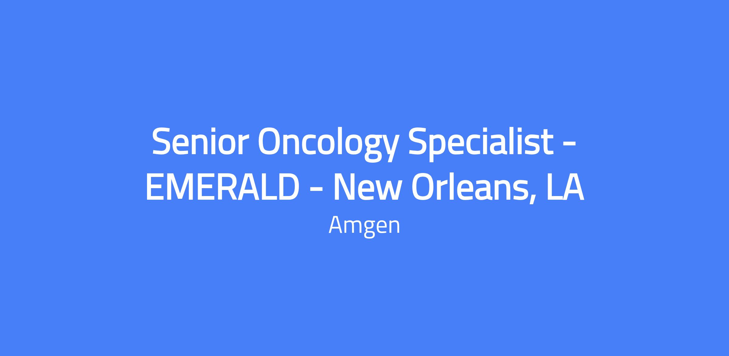 Senior Oncology Specialist for the EMERALD territory (New Orleans, LA) covering New Orleans, Vicksburg, Baton Rouge, Morgan City, and Newton. Acts as the primary customer liaison, providing current clinical knowledge of Amgen's oncology products to medical professionals and communicating clinical and economic benefits. Drives territory sales by applying oncology expertise, building relationships, and ensuring product access and contracts within a patient-focused, values-driven environment.