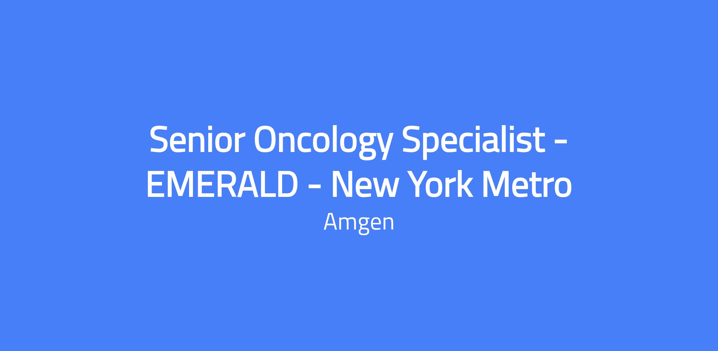 Senior Oncology Specialist – EMERALD territory: New York Metro. Territory covers: Brooklyn/Queens/Staten Island/Lower Manhattan. Relocation is not offered.