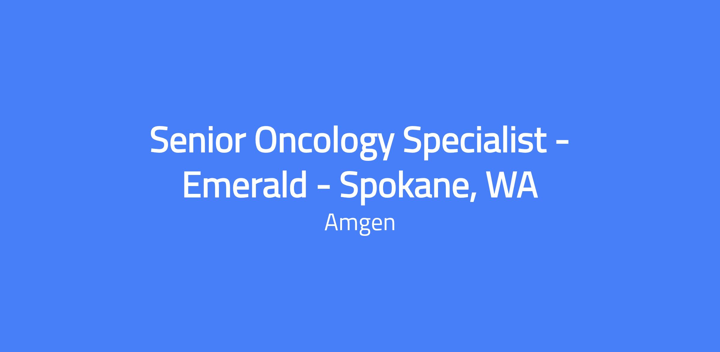 Senior Oncology Specialist based in Spokane, WA, covering the Tacoma and Spokane, WA area and Coeur dβAlene, ID. Relocation is not offered for this role. You will serve as the primary clinical liaison to medical professionals, providing current clinical knowledge of Amgen oncology products and communicating their clinical and economic benefits. The role focuses on delivering branded messages, educational programs, and territory strategies to drive patient care and sales outcomes.