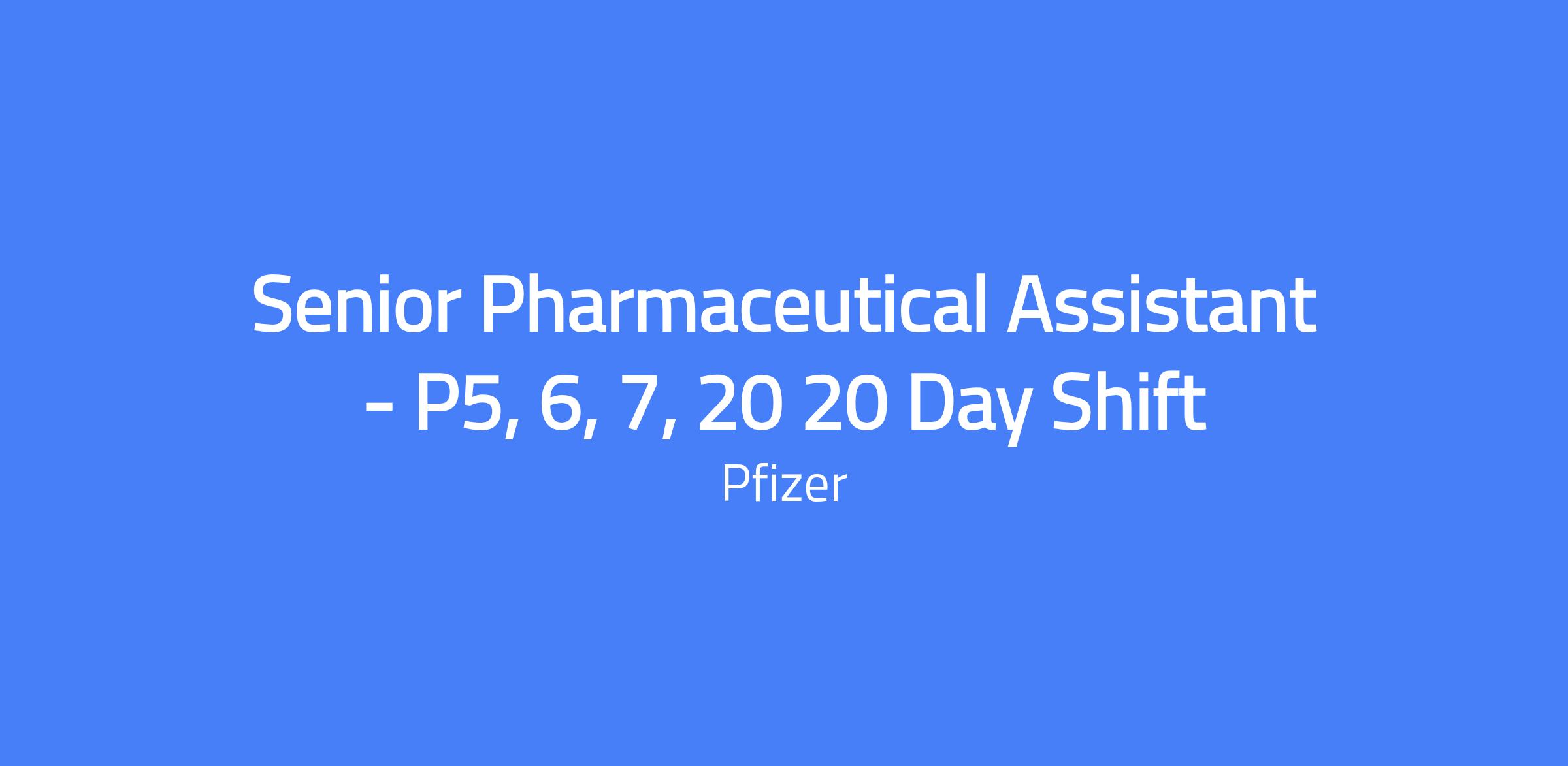 Senior Pharmaceutical Assistant - P5, 6, 7, 20 20 Day Shift supports pharmaceutical manufacturing operations to ensure patients and physicians have the medicines they need when they need them. The role requires adherence to plant safety and current Good Manufacturing Practices (cGMP), contributing to team deliverables, and maintaining quality and process improvements within assigned production areas.