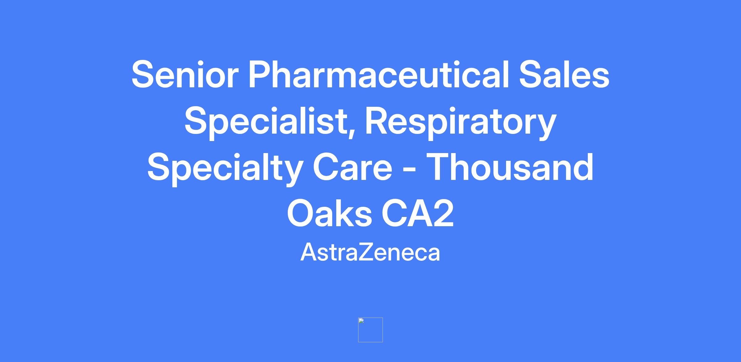 Senior Pharmaceutical Sales Specialist, Respiratory Specialty Care - Thousand Oaks CA2. Drive scientific engagement and product utilization within the Respiratory Specialty Care Team to positively impact patient care.
