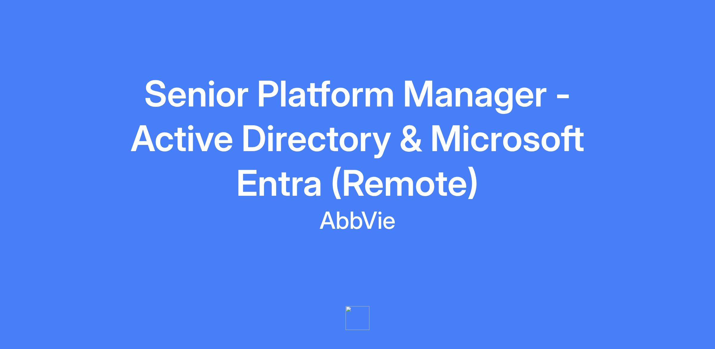 Senior Platform Manager - Active Directory & Microsoft Entra (Remote) responsible for leading IAM architecture, design, and implementation of directory services across on-premises and cloud environments. Drives security posture, compliance, and collaboration across teams to enable secure identity management.