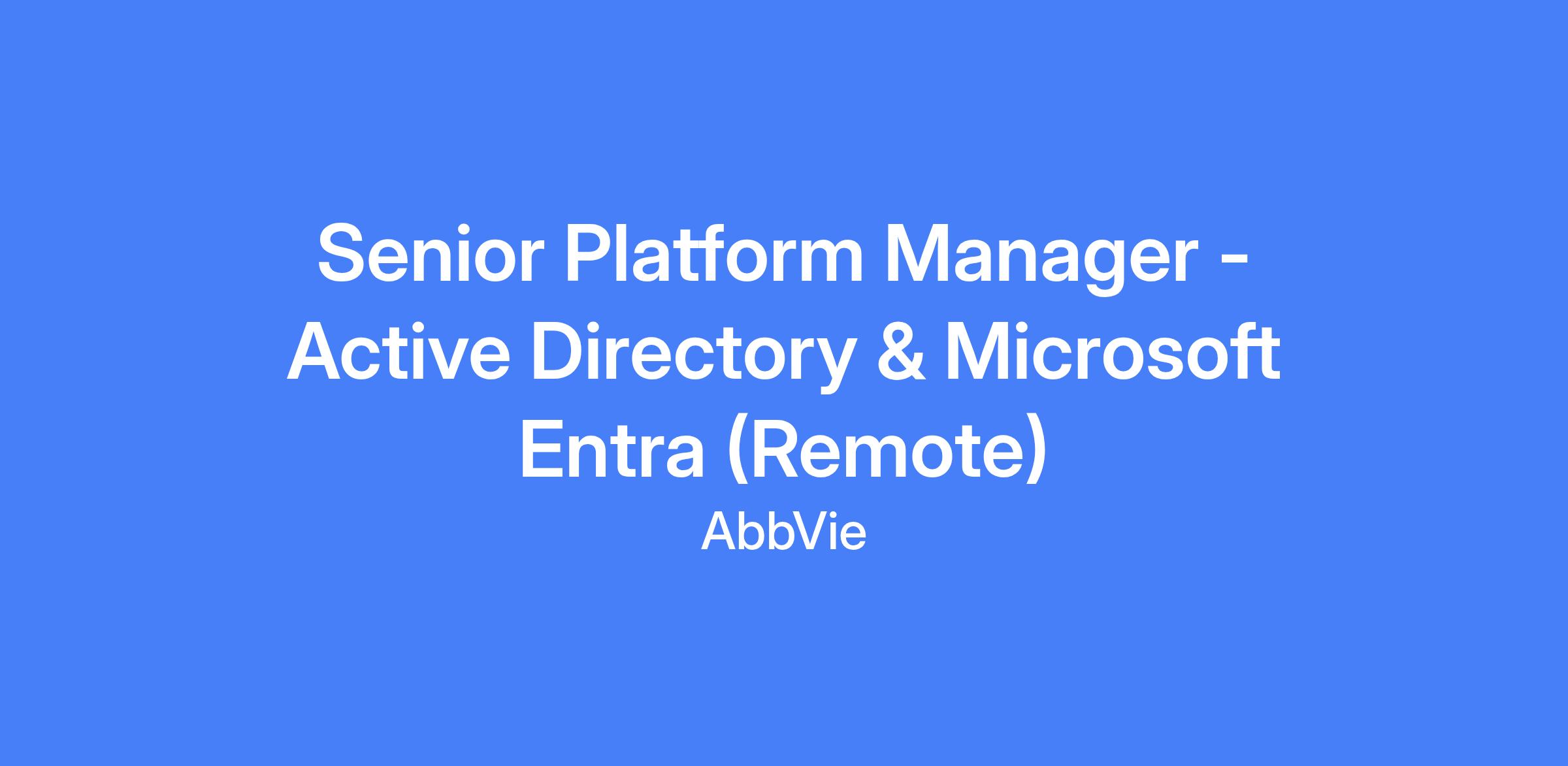 Senior Platform Manager – Active Directory & Microsoft Entra (Remote) leads architecture and implementation of identity and access management (IAM) solutions, overseeing a team of identity engineers across on‑premises and cloud environments. The role collaborates with domain architects to build scalable, secure identity frameworks and ensures compliance with security policies and standards. Remote work is available within the United States.