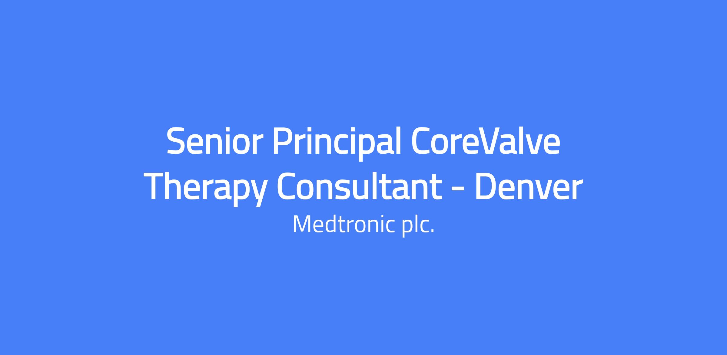 We anticipate the application window for this opening will close on - 15 Apr 2026 At Medtronic you can begin a life-long career of exploration and innovation, while helping champion healthcare access and equity for all. Youâll lead with purpose, breaking down barriers to innovation in a more connected, compassionate world. A Day in the Life We are seeking a committed professional to join our team. While this is a remote position not located at a physical Medtronic site, the candidate hired will be required to reside within the territory and drive to multiple accounts throughout the region. A valid driver's license is essential for this role. Bring your sales talents to a leader in medical technology and healthcare solutions.â¯â¯Rooted in our long history of mission-driven innovation, our medical technologiesâ¯open doors.â¯We support your growth with the training, mentorship, and guidance you need to own your future success.â¯Join us as we engineer the extraordinary for a career in sales that changes lives. ⯠CAREERS THAT CHANGE LIVES - POSITION DESCRIPTION: The Senior Principal CoreValve Therapy Consultant (Sales Representative) achieves sales revenue targets and grows market share for a specified geography by promoting, selling and servicing Medtronic CoreValve and related products, post approval, while ensuring safe adoption and growth.⯠The CoreValve Sales Representative 3 practices good territory management with strong organization, administration and expense planning and control.⯠The CoreValve Representative is a partner and resource to the CVG field organization and to Catheter Based Therapies (CBT) cross functional teams, including Medical Education, Marketing, Research, and Development. â¯** As this is a field position you must have the ability to travel with overnight stay up to 50 - 75% of the time (geography variability) ** To find all Structural Heart Sales positions please use #shsales in the key word search at Medtronic Careers ⯠A DAY IN THE LIFE - POSITION RESPONSIBILITIES: Territory Management and Account Development Provide quality support to help sites achieve procedural success and for the safe growth of CoreValve Develop and post approval, execute strategies and plans to achieve/exceed sales quota for commercial cases. Maintain and expand existing business and develop new business opportunities Serve as trusted technical expert for TAVR procedure and products.⯠Provide technical support for TAVR implanting centers, including âscrubbing inâ to assist with valve loading and providing technical case support consistent with the instructions for use. Educate sites on proper indications for TAVR procedures Probe to understand and confirm customersâ needs, handle objections and gain commitment.⯠Develop and implement strategies to counter competitor messaging Educate customers to ensure that products are understood and used effectively Represent company at industry conferences and maximize potential by targeting specific customers to gain sales leads, and pursue opportunities to promote the companyâs product portfolio Knowledge of CoreValve and other Medtronic TAVR product IFUs for safe and effective use of devices Develop and maintain comprehensive clinical and technical product knowledge.⯠Understands current published TAVR and relevant literature.⯠Recognize and understand competitive products, industry trends, and CBT/CVG portfolio.⯠Liaison with R&D for technology improvements and next generation needs Technical and Clinical Support Provide quality technical support to help sites achieve procedural success. Provide technical support to Medtronic employees and implanting teams for CoreValve implant procedures in accordance with Medtronic guidance Provide technical leadership for TAVR device procedures.⯠Educate implanting teams on proper indications for TAVR procedures.⯠Provide support on questions regarding device suitability with measuring ability and CT reconstruction expertise.⯠Provide comprehensive technical support including knowledge of imaging modalities (echo/angiography/CT), EKG, blood pressure, wave forms, and ancillary procedural solutions Knowledge of Clinical trial protocols, and CoreValve and other Medtronic TAVR product IFUs for safe and effective use of devices Develop and maintain comprehensive clinical and technical product knowledge.⯠Understands current published TAVR and relevant literature.⯠Recognize and understand competitive products, industry trends, and CBT/CVG portfolio.⯠Liaison with R&D for technology improvements and next generation needs Customer Service Ensure maximum coverage of all accounts within territory geographic areas to maintain optimum level of exposure and effective time management.⯠Assist with scheduling of cases and proper customer support Participate in physician training and case observations when necessary Participates in any other planned customer education meetings and society conventions Respond to customer requests and resolve complaints in a prompt and effective manner to include proper device complaint reporting Maintain high standards of personal presentation and promote a professional personal and company image Assist sites with identifying routine implant days and proper case scheduling Training, Education and Professional Development Develop and maintain comprehensive clinical and technical product knowledge Recognize and understand competitive products, features, strengths in relation to the companyâs products Participate in product and skills development programs, managing own self development Resource for R&D for CoreValve improvements and next generation needs Assists in training new hires to Medtronic CBT team Helps drive and maintain quality initiatives and global best practice initiatives Administrative Responsibilities Develop and maintain accurate account and territory records Responsible for CoreValve inventory at sites to include shipments, usage and return of pr