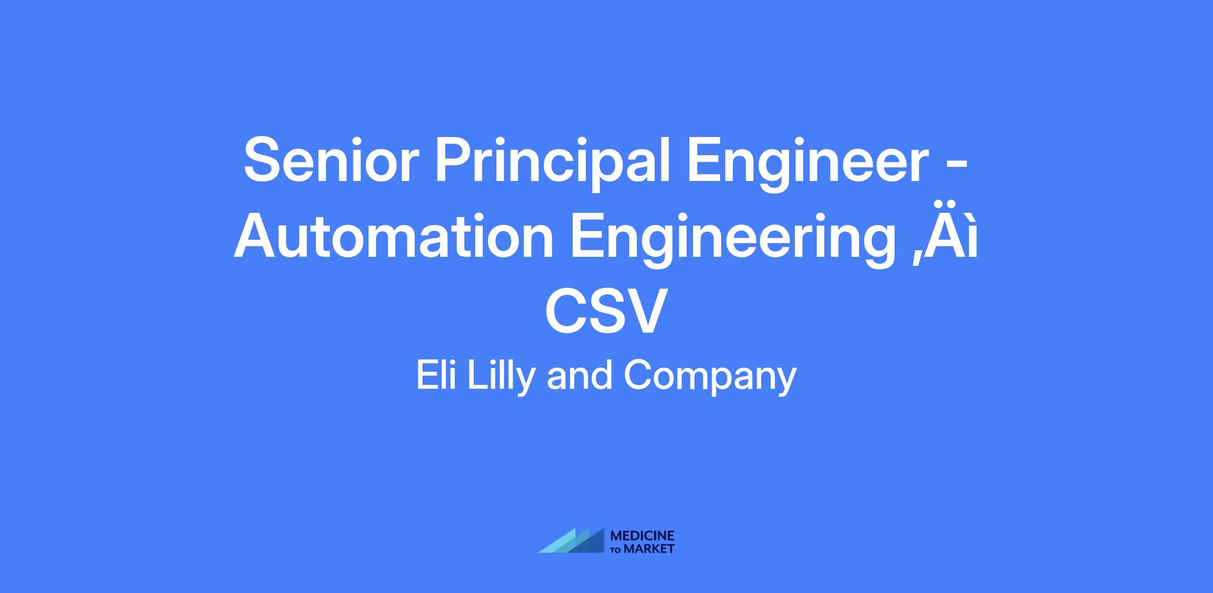 Senior Principal Engineer - Automation Engineering – CSV. Provide automation support across operating areas and capital projects, lead and execute CSV activities for process automation systems, and mentor team members to ensure reliable and compliant control applications and systems in manufacturing.