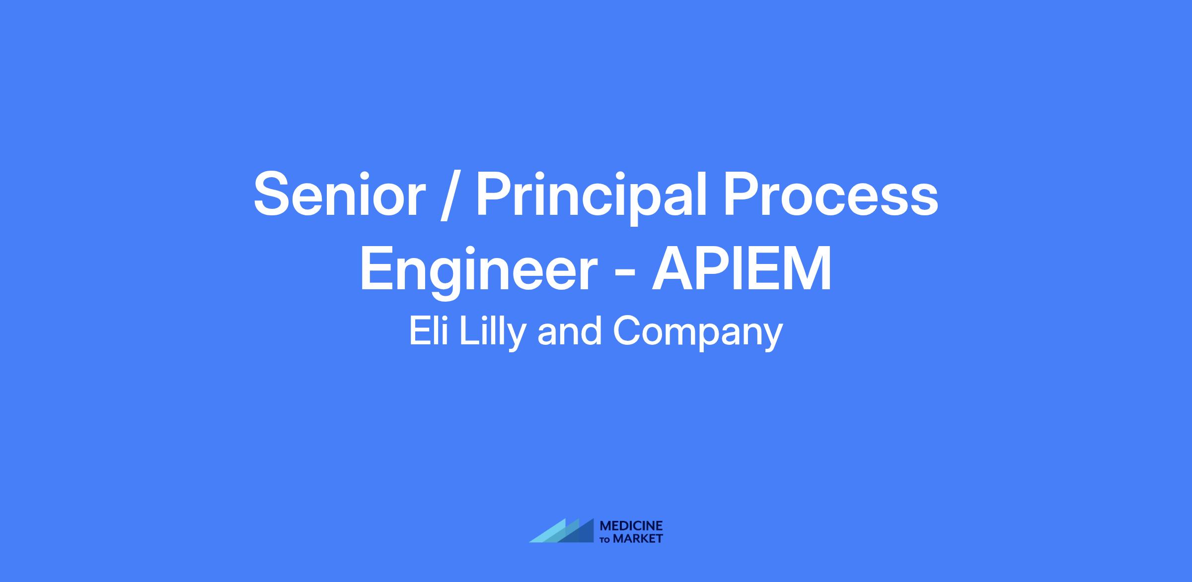 Senior / Principal Process Engineer - APIEM. Provide technical leadership and expertise in conjunction with API EM contract manufacturers to ensure reliable supply and commercialization of medicines with safety and quality as priorities. Lead process knowledge development, equipment specification, QA/HSE alignment, and continuous improvement activities across contract manufacturing sites.