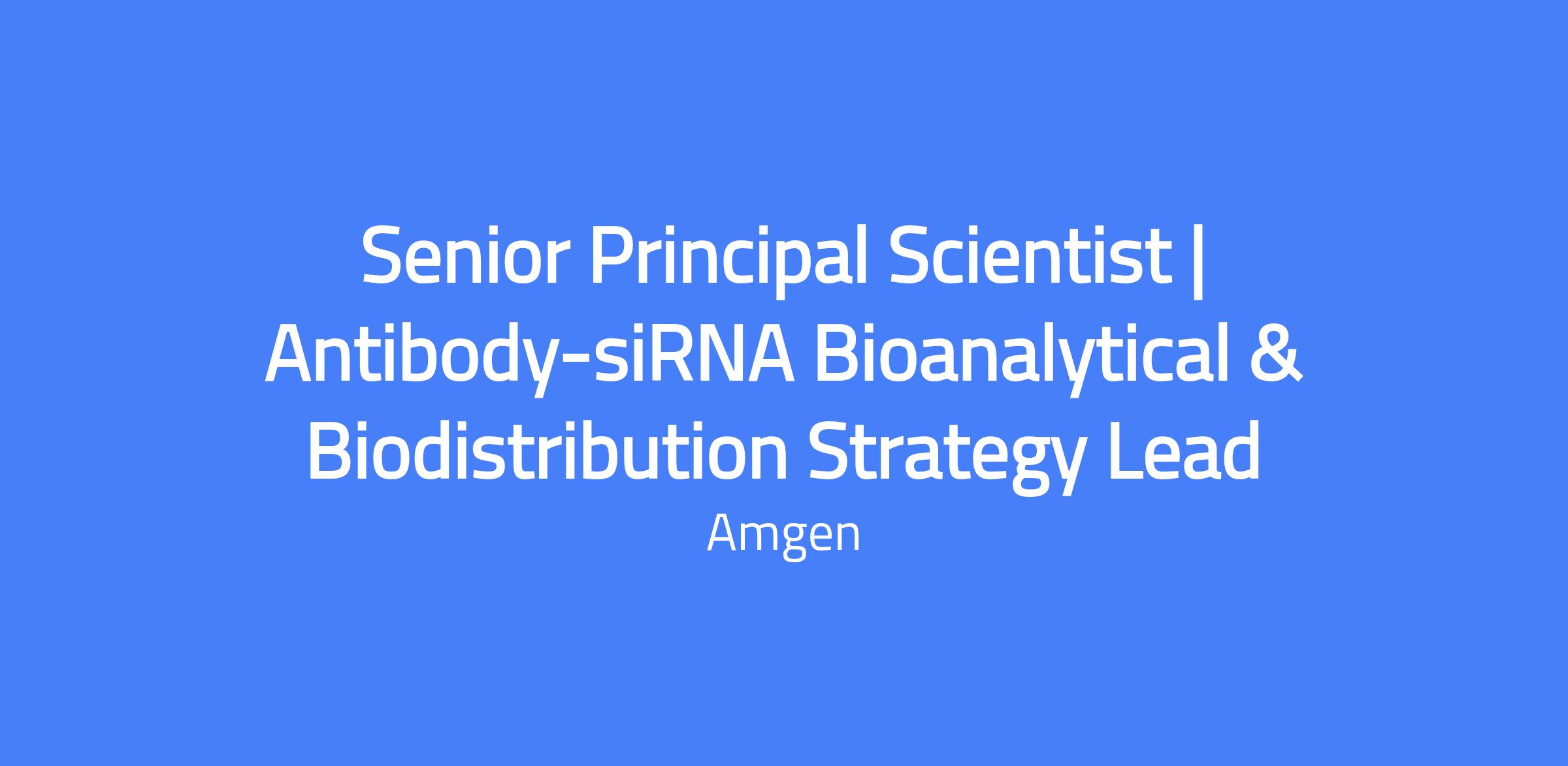 Senior Principal Scientist - Antibody-siRNA Bioanalytical & Biodistribution Strategy Lead. Lead the strategy and execution of innovative bioanalytical platforms to measure antibody-siRNA conjugates in preclinical samples (in vitro and in vivo) to characterize ADME and understand pharmacokinetics and PK-PD relationships. Represent PKDM-BA on project teams and collaborate with cross-functional teams to drive clinical candidate selection and regulatory filings.