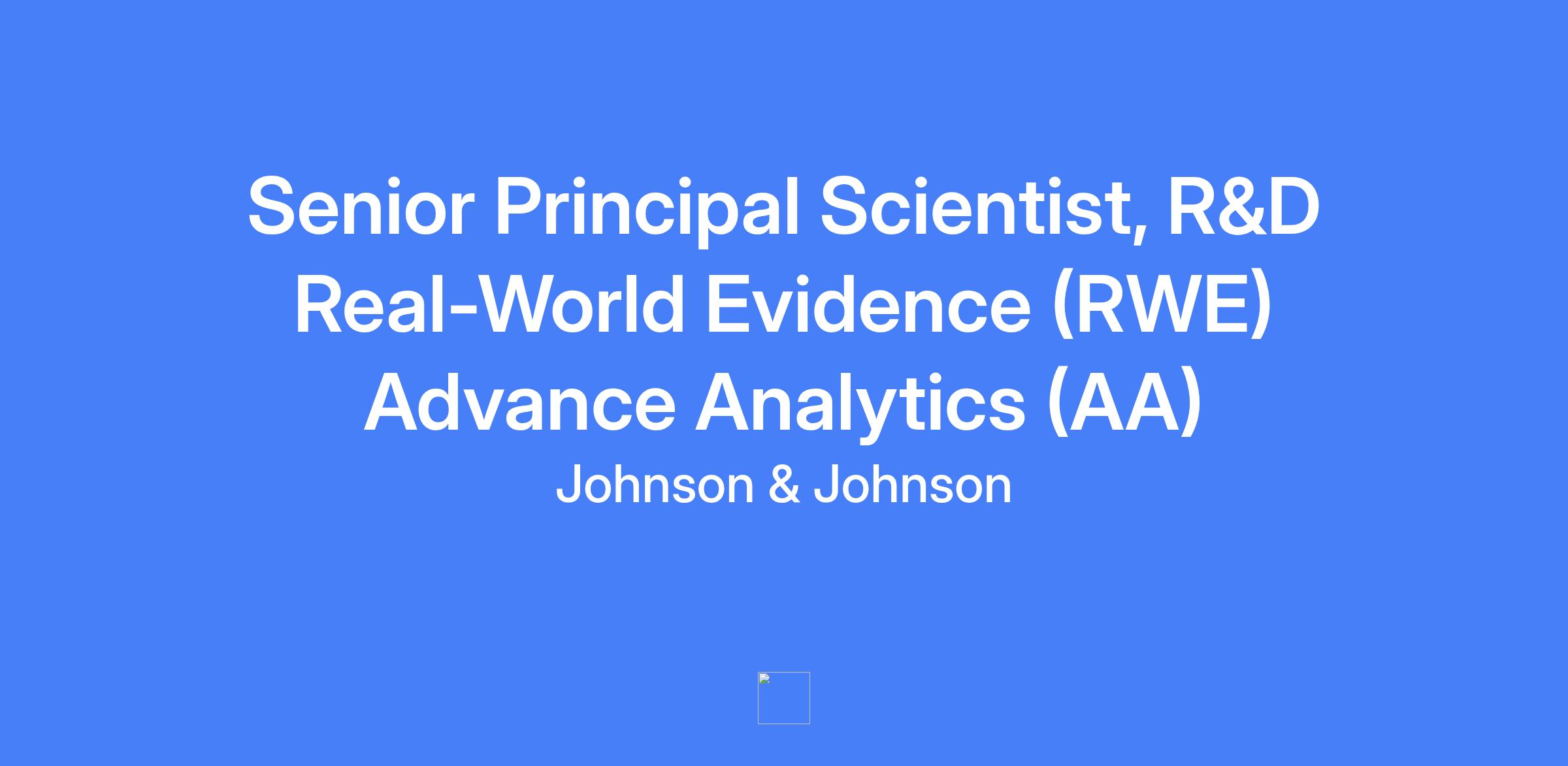 Senior Principal Scientist, R&D Data Science and Digital Health, Real-World Evidence