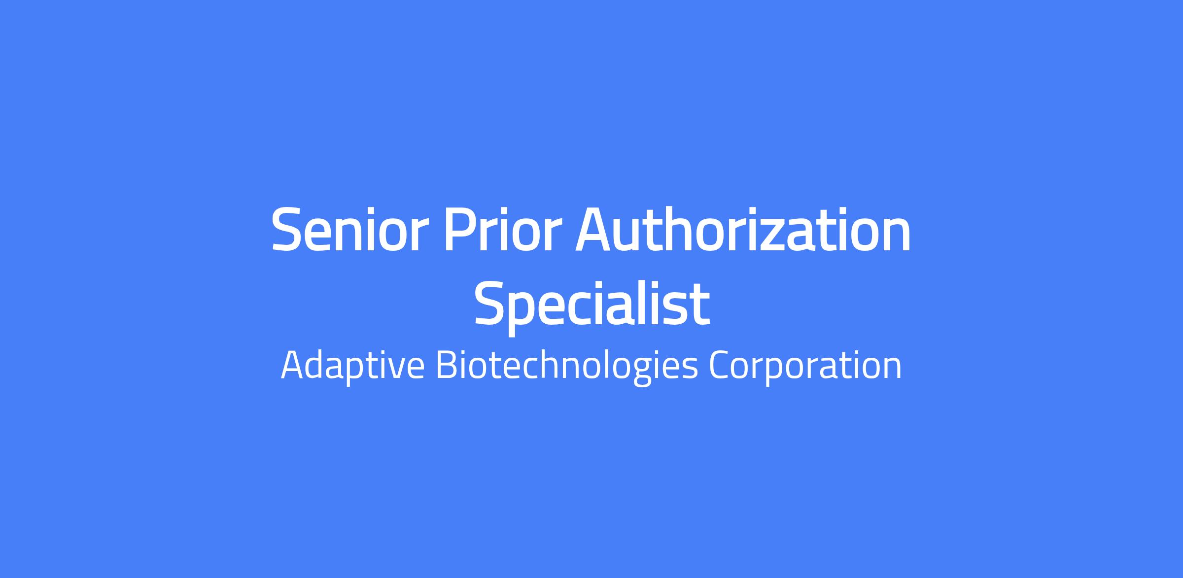 The Sr Prior Authorization Specialist assists in overseeing the prior authorization workflow and vendors to ensure timely and accurate insurance approvals for Adaptive Biotechnologies clonoSEQ MRD Assay. This role combines hands-on prior authorization responsibilities, including workflow management, staff support, and process improvement initiatives. The position acts as a subject matter expert and liaison between the laboratory, vendors, payers, and internal reimbursement operations.