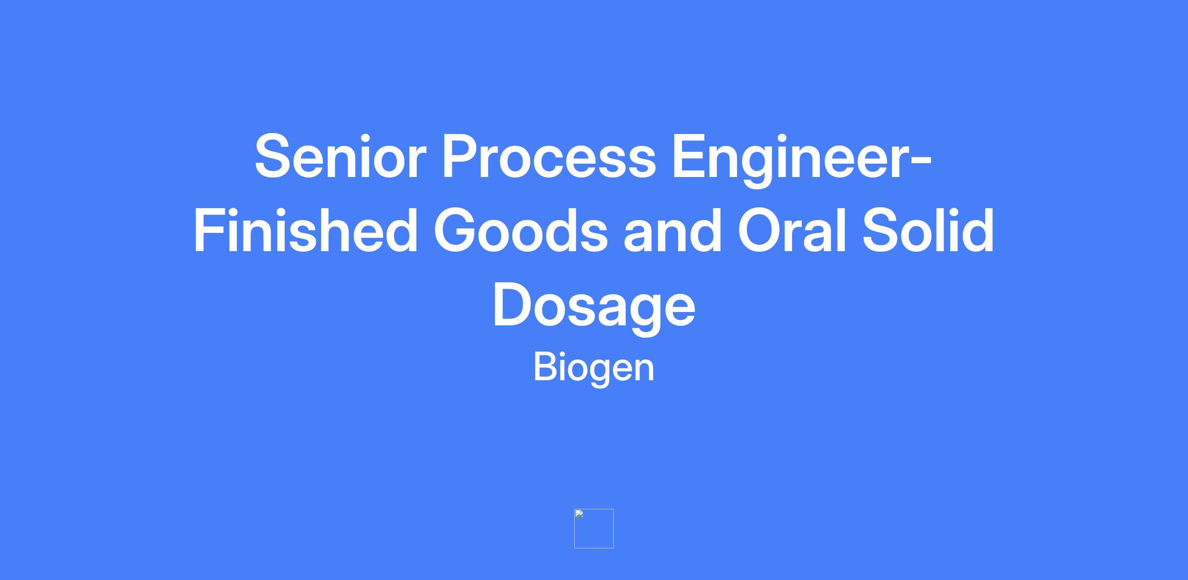 You are a Senior Process Engineer and subject matter expert within the Drug Product Technical Authority, supporting Finished Goods (FG) and Oral Solid Dosage (OSD) technologies across Biogenβs global manufacturing network. You will drive technical excellence, ensure equipment and systems compliance, and collaborate with site engineering leads to guide engineering teams in FG and OSD operations. This hybrid role is based in Research Triangle Park, NC.