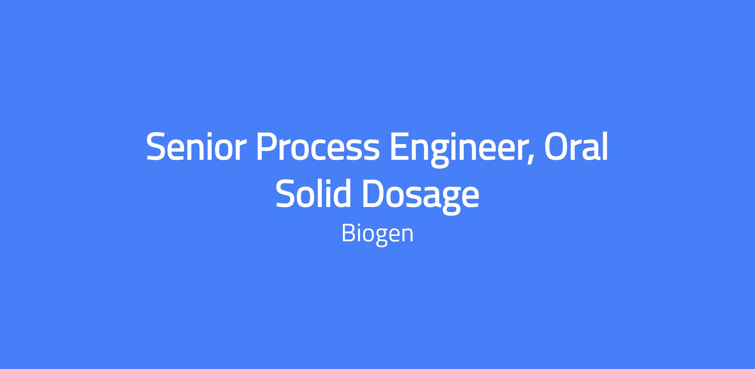 - Experience with OSD process and equipment design and manufacturing facilities.
