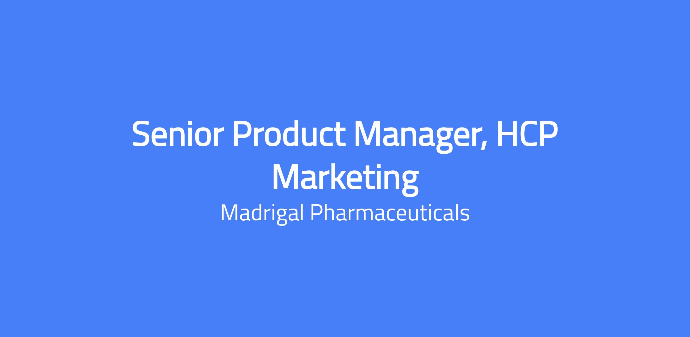 Senior Product Manager, HCP Marketing (Non-Personal Promotion) is a key member of Madrigal's US Marketing team, focused on healthcare professionals. The role will develop and execute HCP marketing strategies, including HCP media and non-personal promotion (NPP), analytics, and initiatives targeting endocrinologists, to support the US launch and growth of Rezdiffra (resmetirom). This role requires partnering with cross-functional teams and managing budgets and timelines to deliver high-impact solutions.