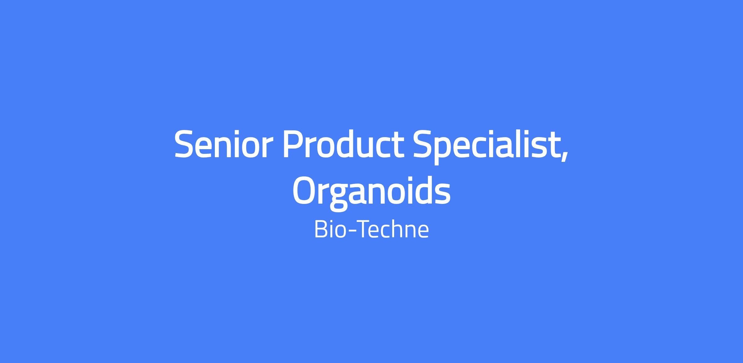 Senior Product Specialist, Organoids. The role translates customer problems and market insights into compelling business cases for new product development and strategic partnerships, guiding R&D to deliver products, data, and solutions that enhance customer acquisition in a rapidly evolving organoid market. This role collaborates across Commercial, R&D, Operations and Product Marketing to transform the business from a reagent vendor to an organoid solution provider and to deliver growth.