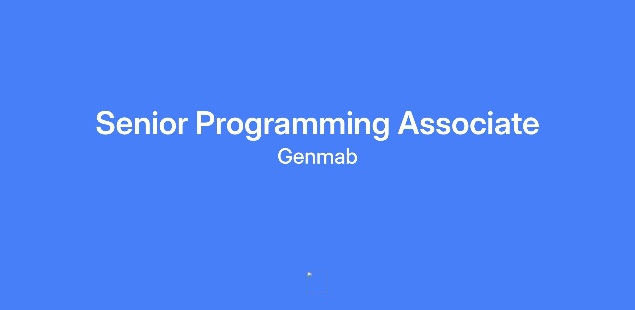 Senior Programming Associate at Genmab. Provide hands-on programming support for production and QC/acceptance testing of ADaM and TLF, assist with creation of trial level/pooled ADaM specifications, and support submission packages. Act as SME for optimization of programming processes, standards, and templates.