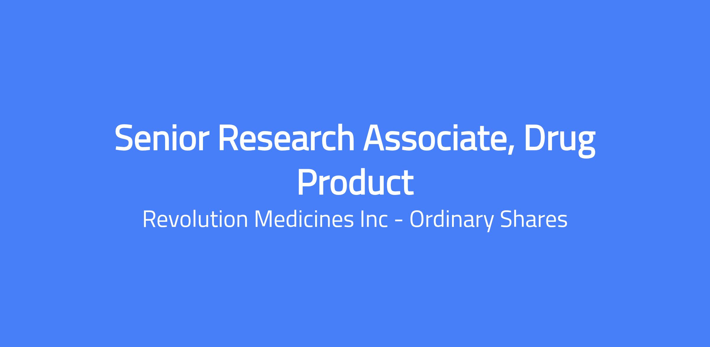 We have an opening for a full-time position as a Senior Research Associate position within the Drug Product function of our Pharmaceutical Development and Manufacturing (PDM) department. The position will be laboratory-based and responsible for preformulation studies, preclinical formulations development, and troubleshooting to support Revolution Medicines’ drug product development.